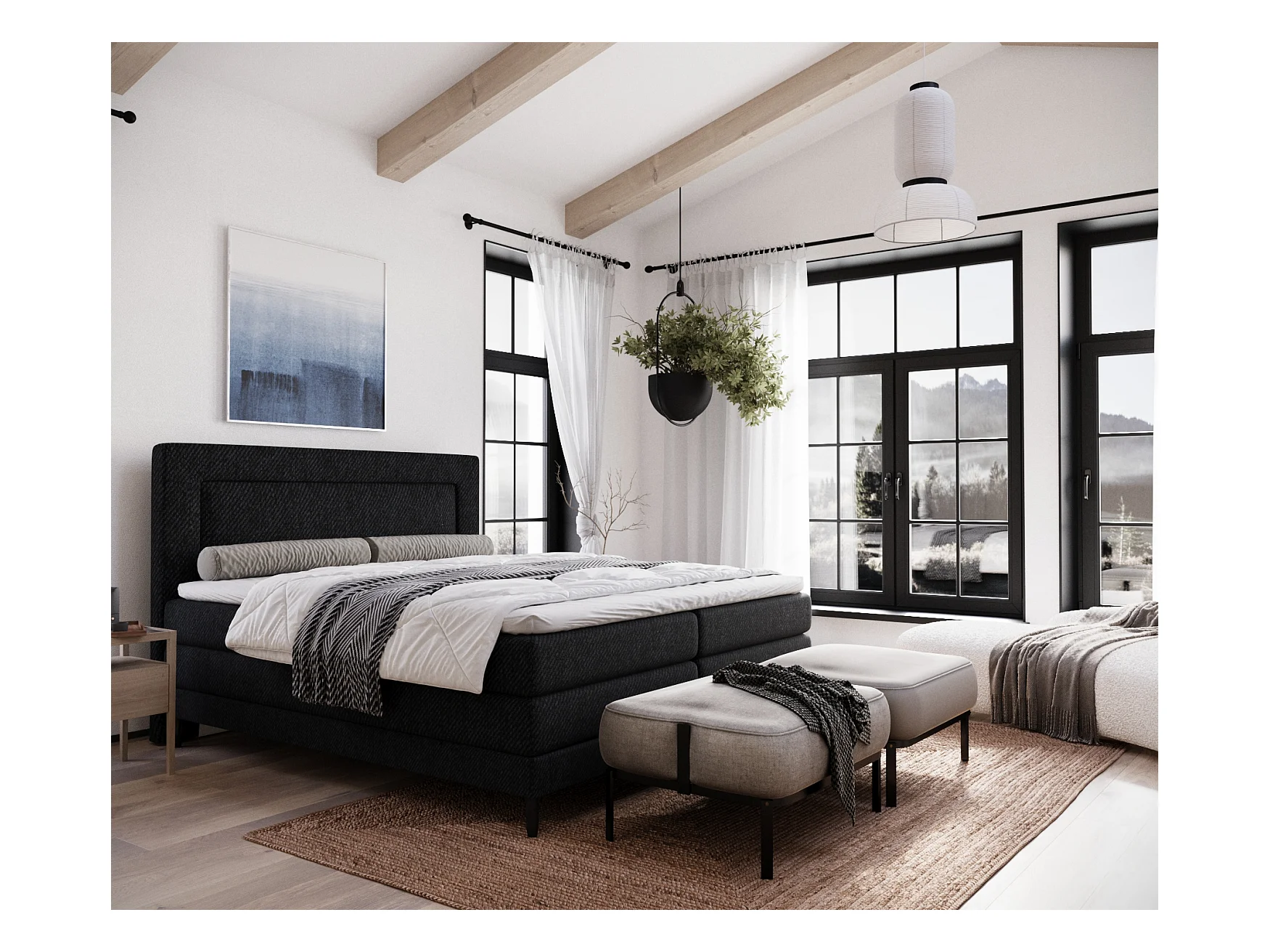 Boxspringbett aus Webstoff Sub - Matratze - Toppermatratze - 200x200 cm - schwarz
