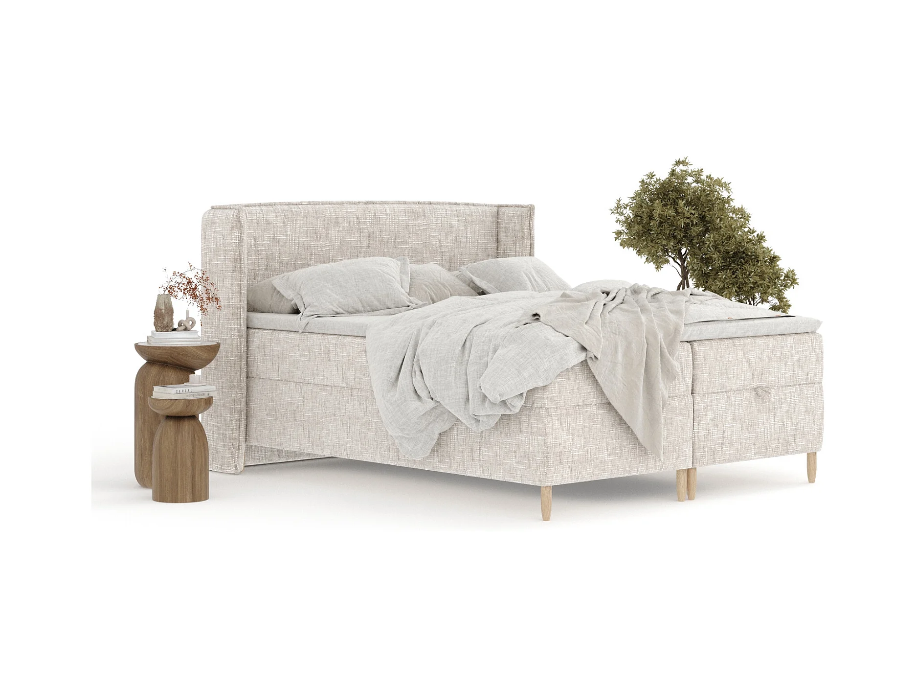 Boxspringbett aus Webstoff Monpelli - Matratze - Toppermatratze - 160x200 cm - beige