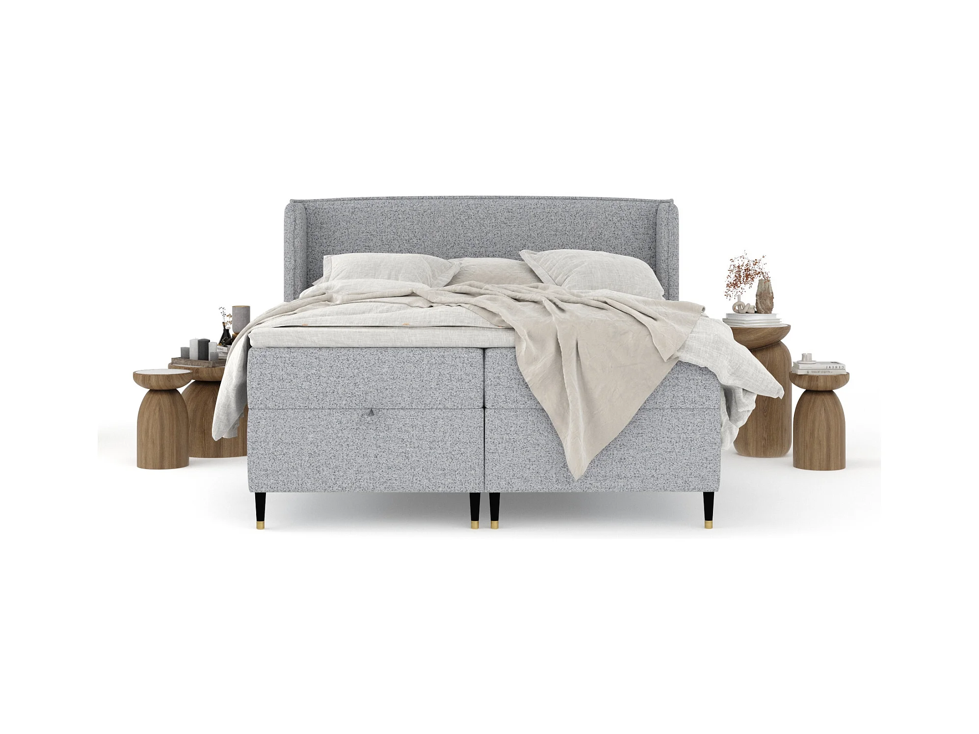 Boxspringbett aus Webstoff Monpelli - Matratze - Toppermatratze - 180x200 cm - grau