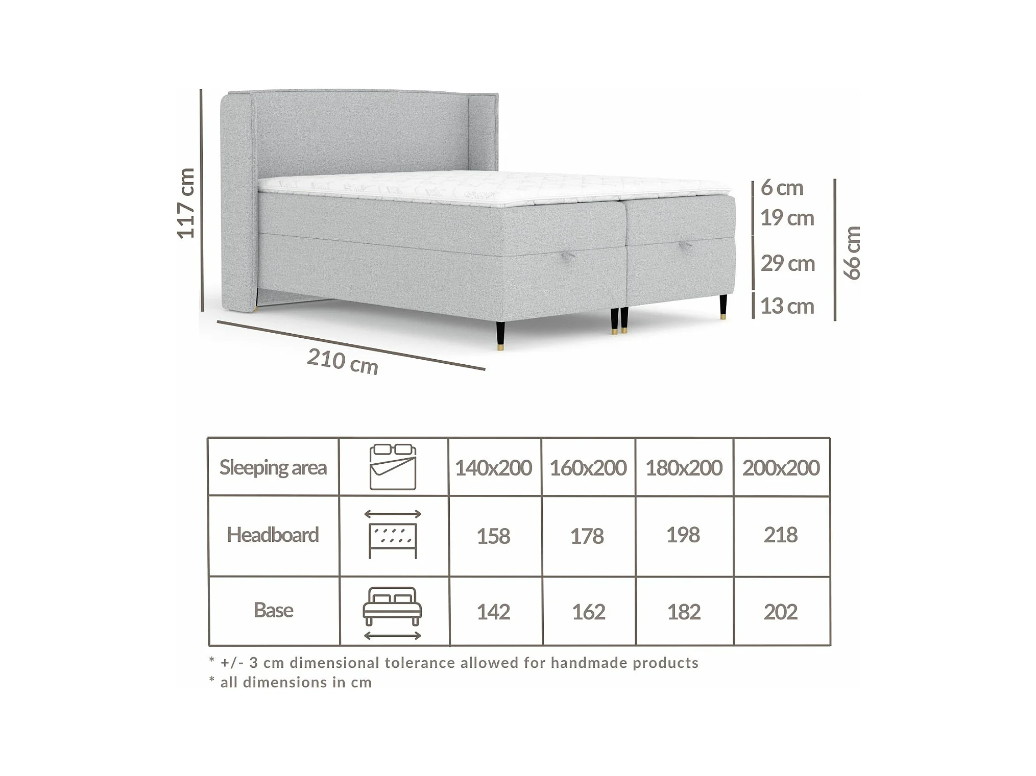 Boxspringbett aus Webstoff Passion - Matratze - Toppermatratze - 180x200 cm - hellgrau