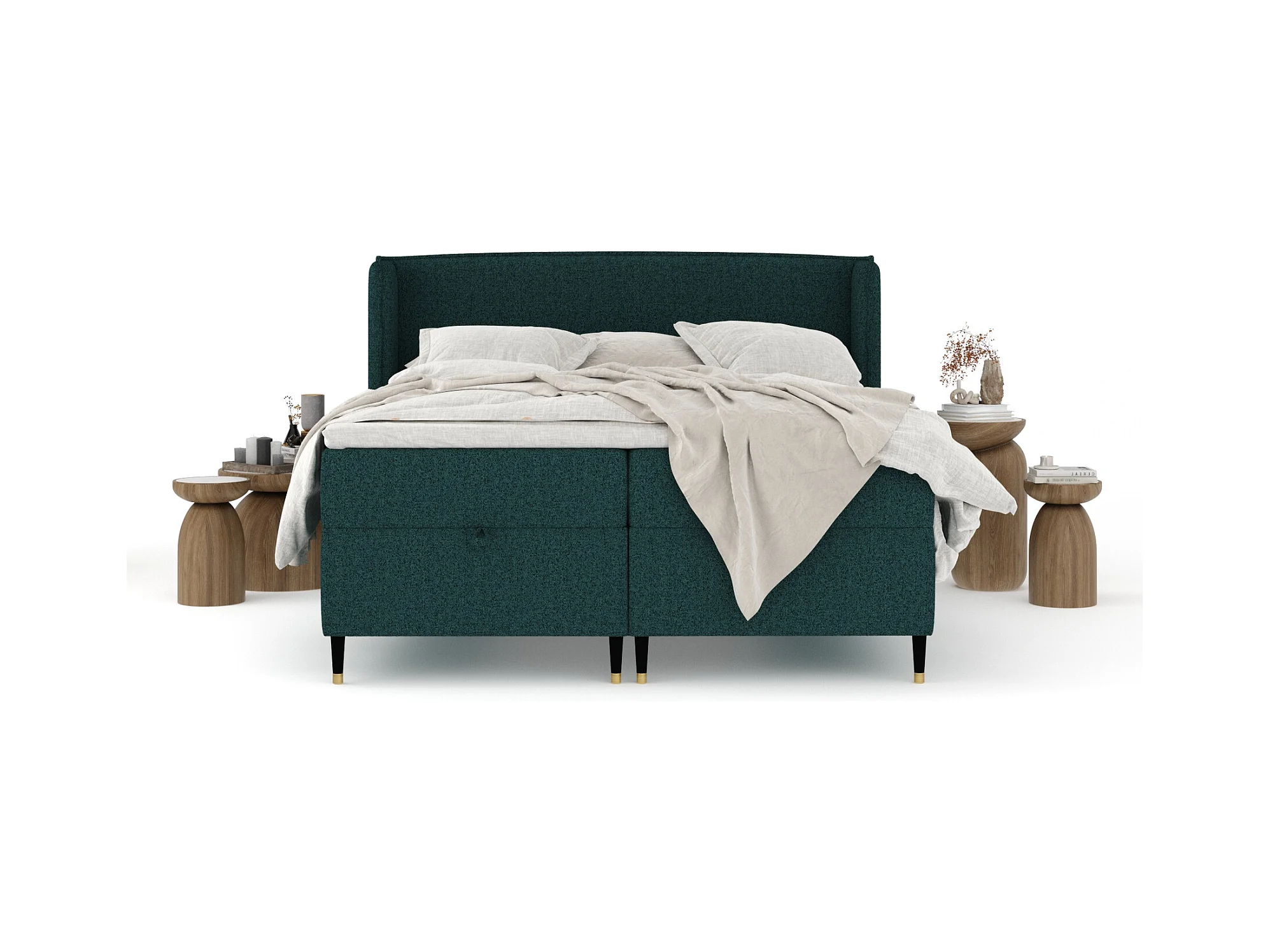 Boxspringbett aus Chenille-Stoff Passion - Matratze - Toppermatratze - 180x200 cm - blaugrüne