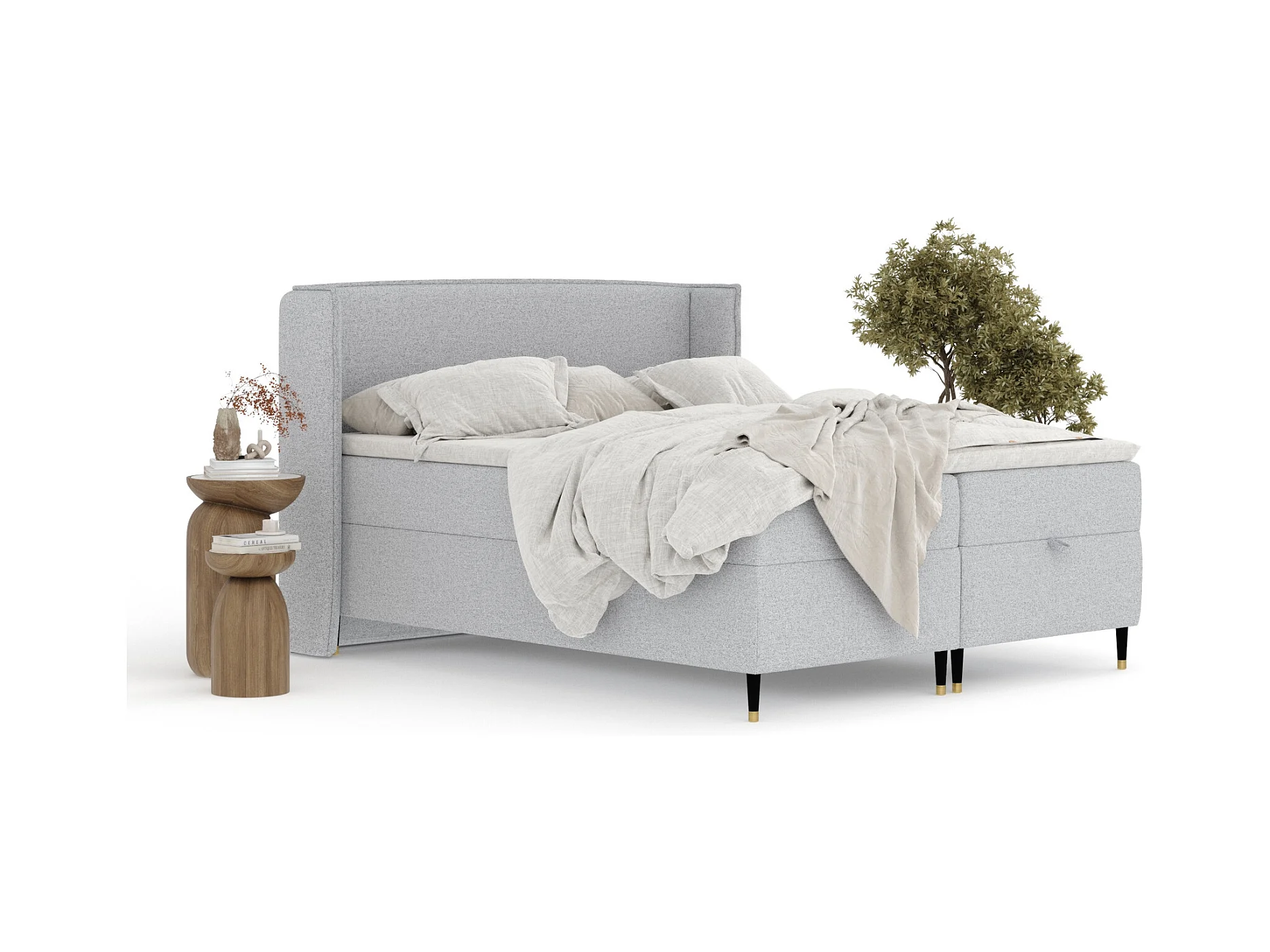 Boxspringbett aus Webstoff Monpelli - Matratze - Toppermatratze - 180x200 cm - hellgrau