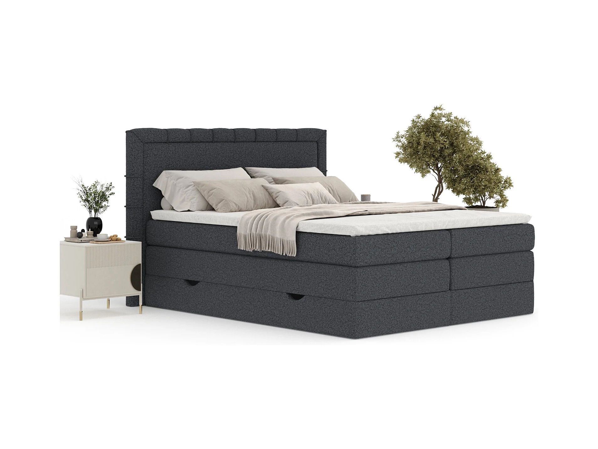 Boxspringbett aus Webstoff Ava - Matratze - Toppermatratze - 200x200 cm - schwarz