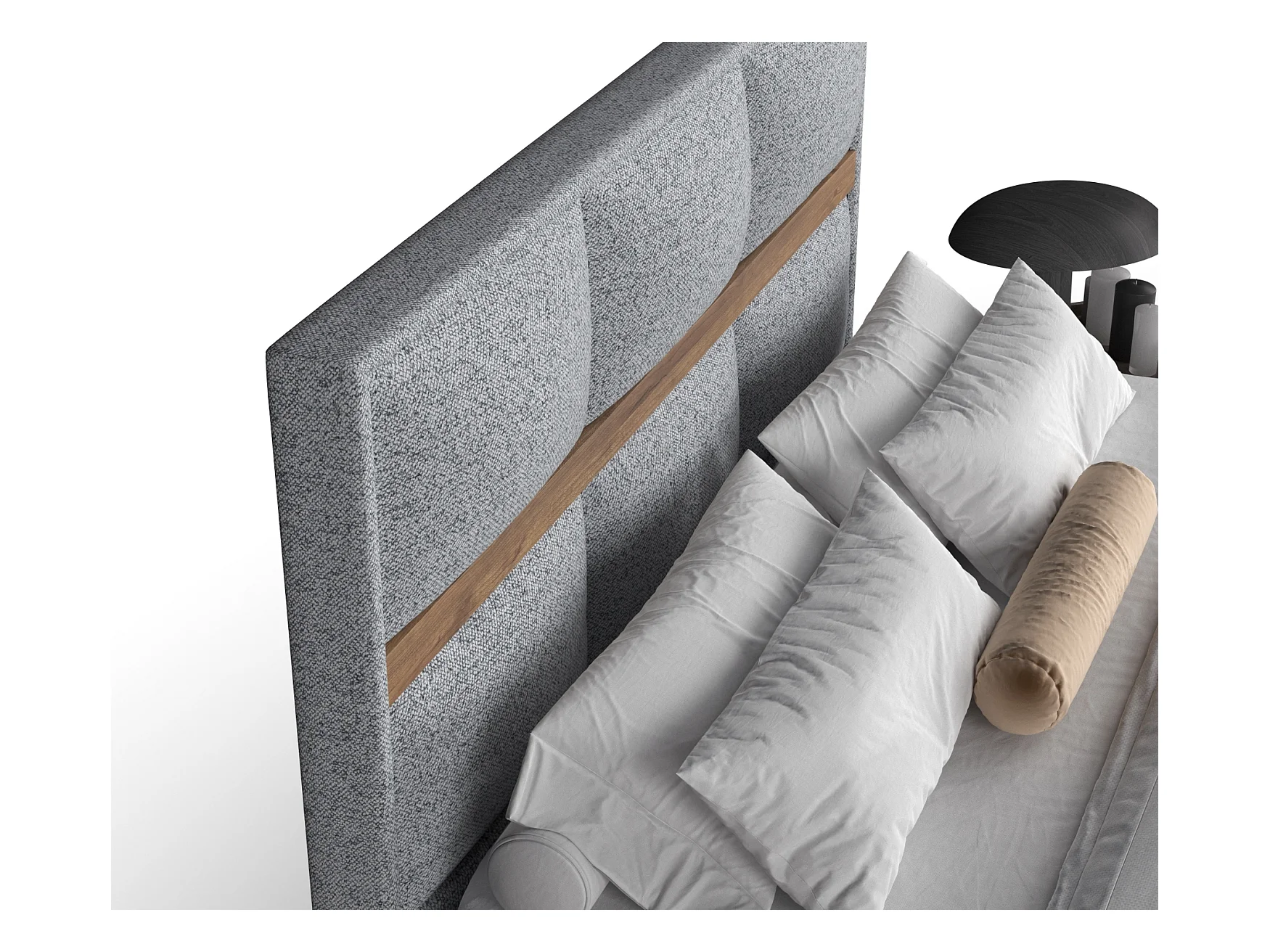 Boxspringbett aus Webstoff Otus - Matratze - Toppermatratze - 180x200 cm - grau