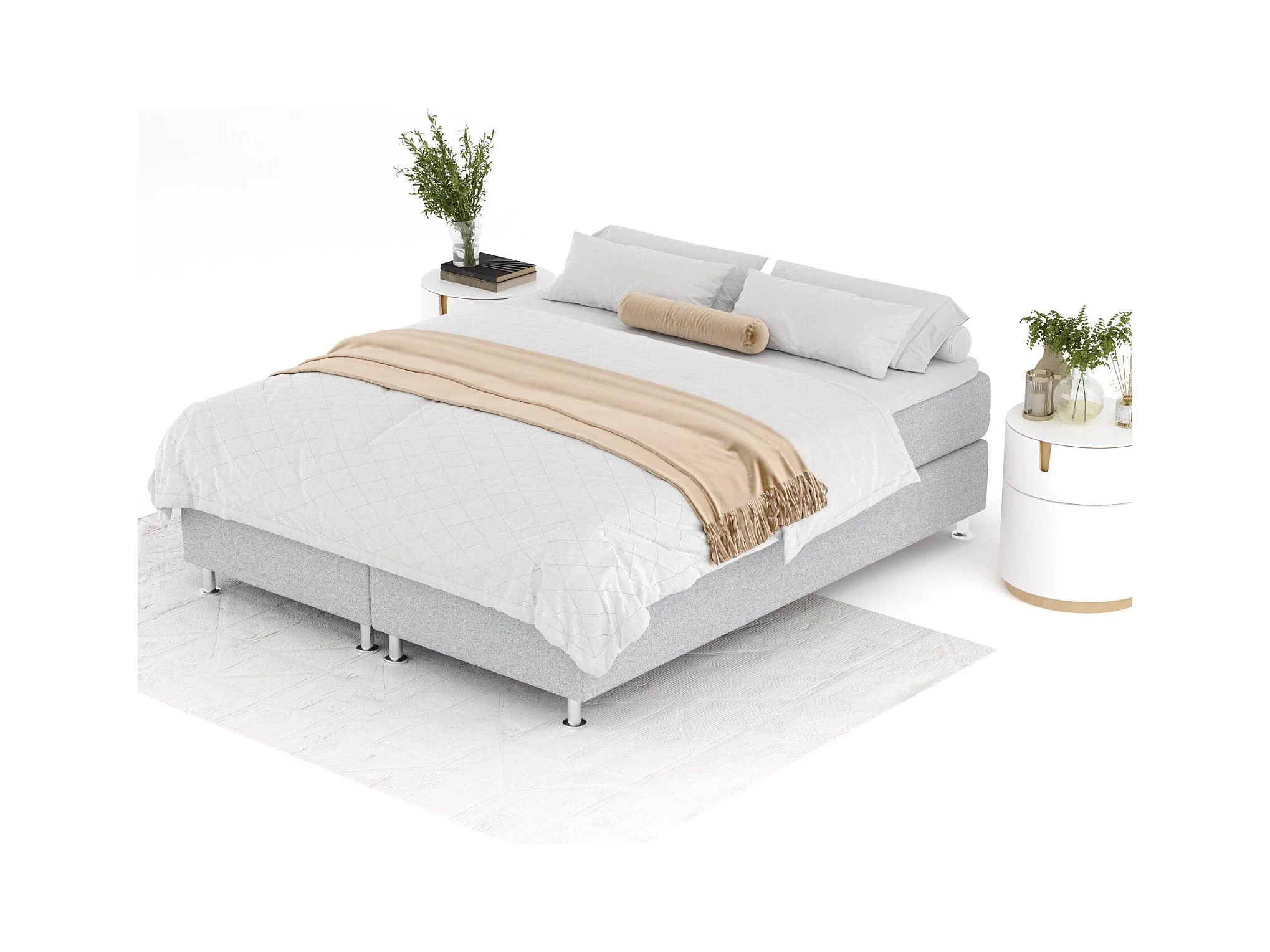 Boxspringbett aus Webstoff Casone - Matratze - Topper - 180x200 cm - hellgrau