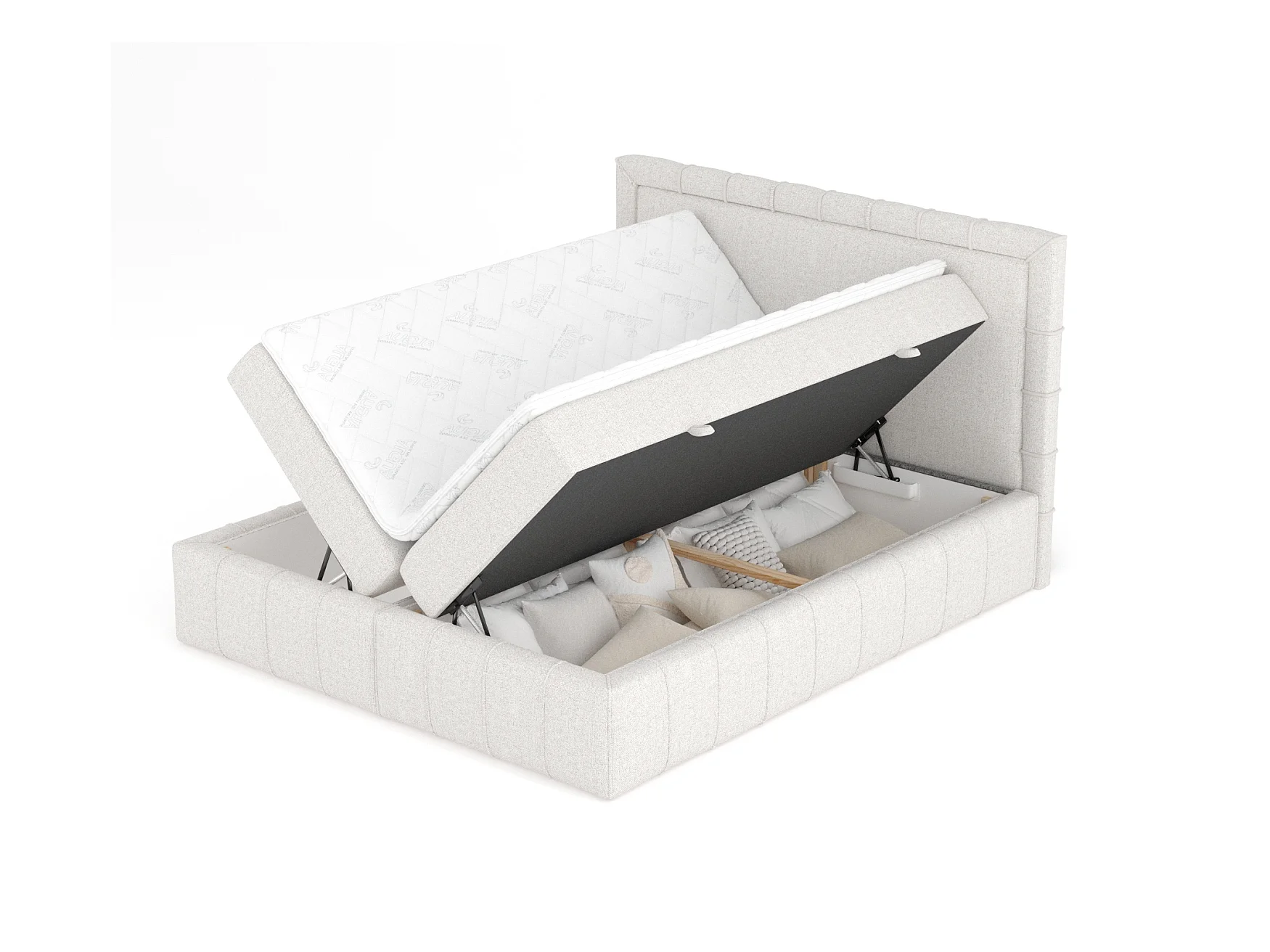 Boxspringbett aus Webstoff Passion - Matratze - Toppermatratze - 160x200 cm - creme