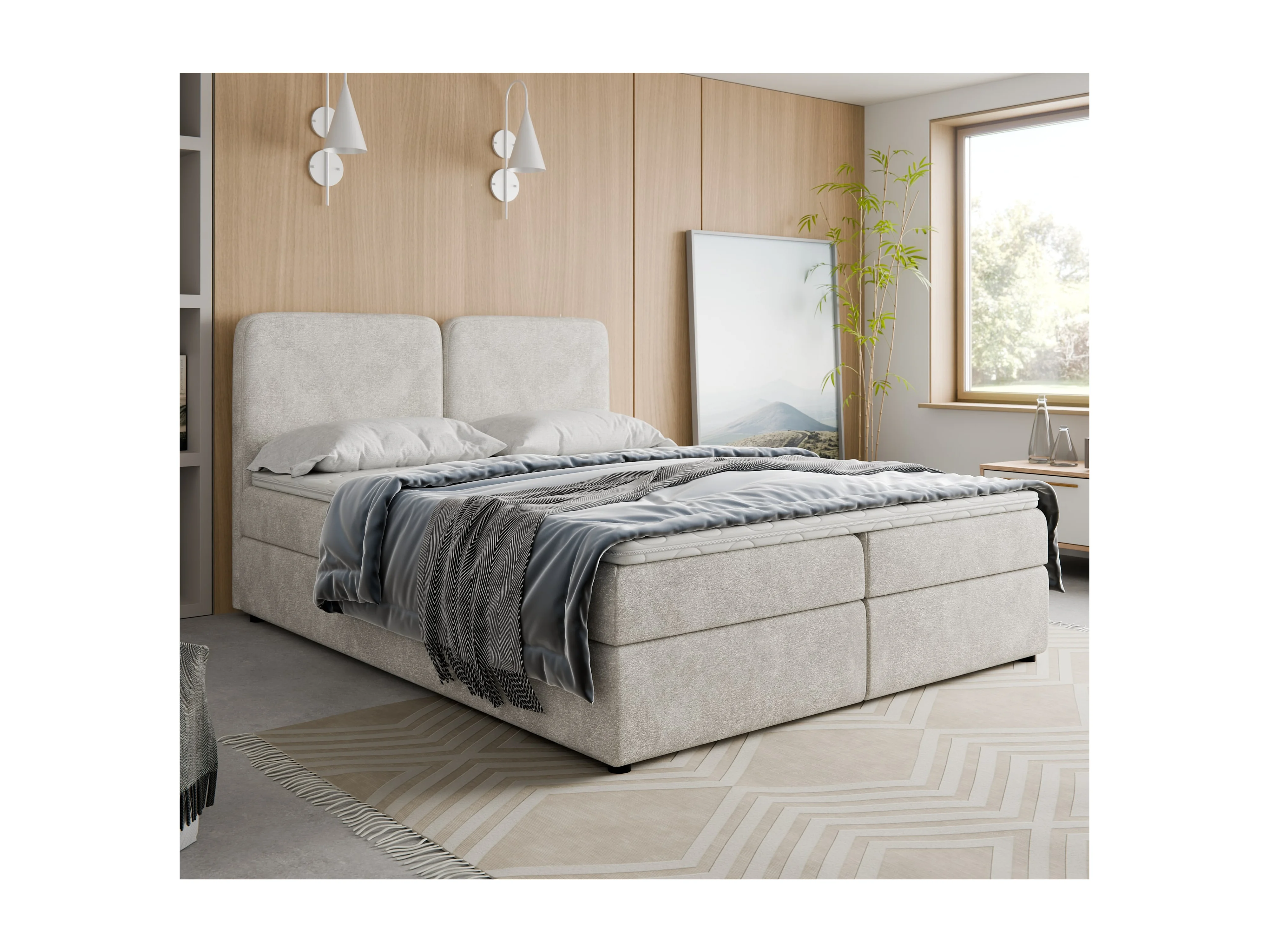 Boxspringbett BOHO 140x200 Bouclé Cremeweiß inkl. Topper, 2 Matratzen & 2 Bettkästen