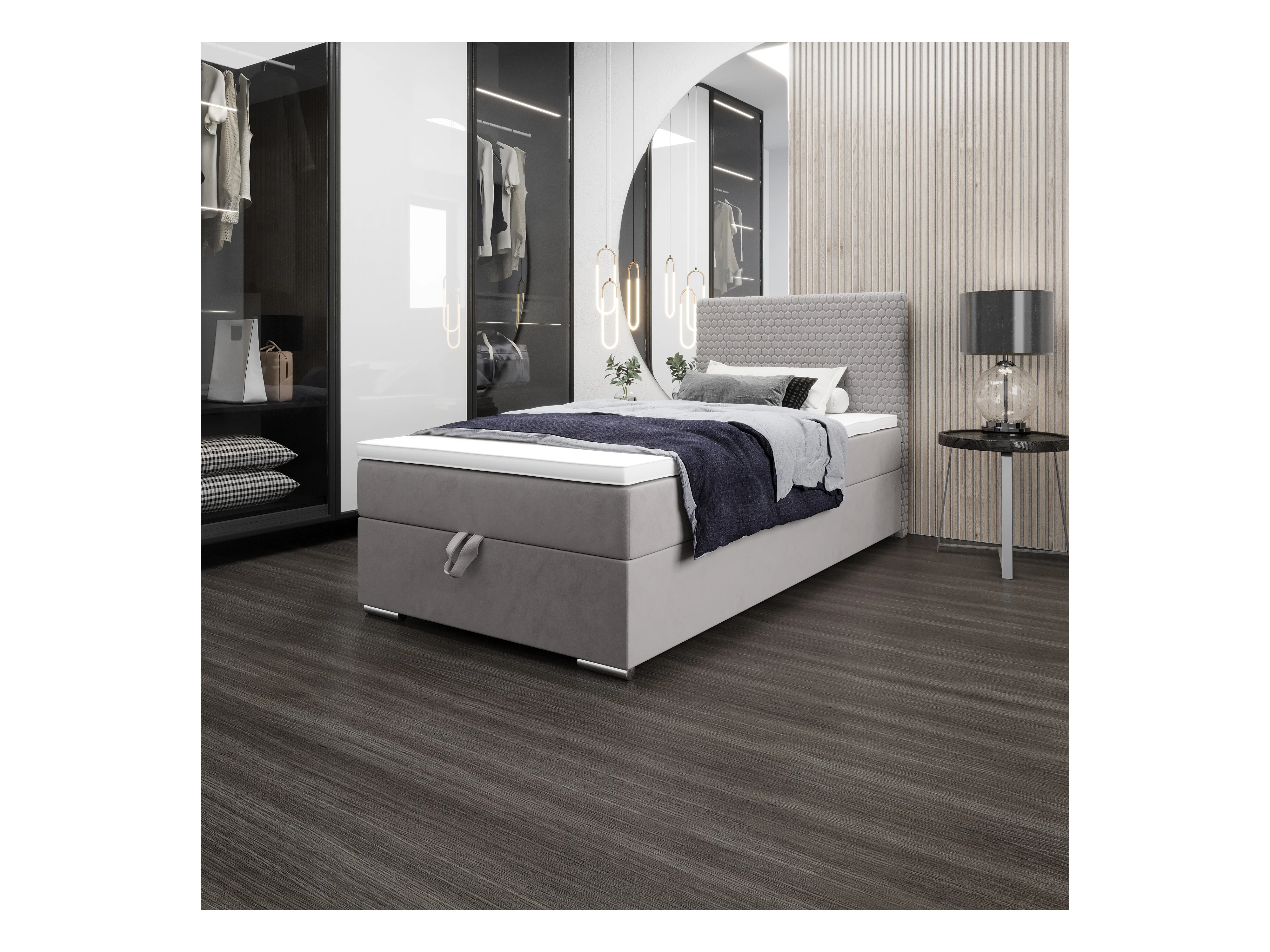 BEDANTE Boxspringbett ZAKO 1 90x200 Cosmic 160 Hellgrau Rechts Öffnung Bett Bettkasten Einzellbett Hotelbett Topper Matratze Schlafzimmer Stauraum
