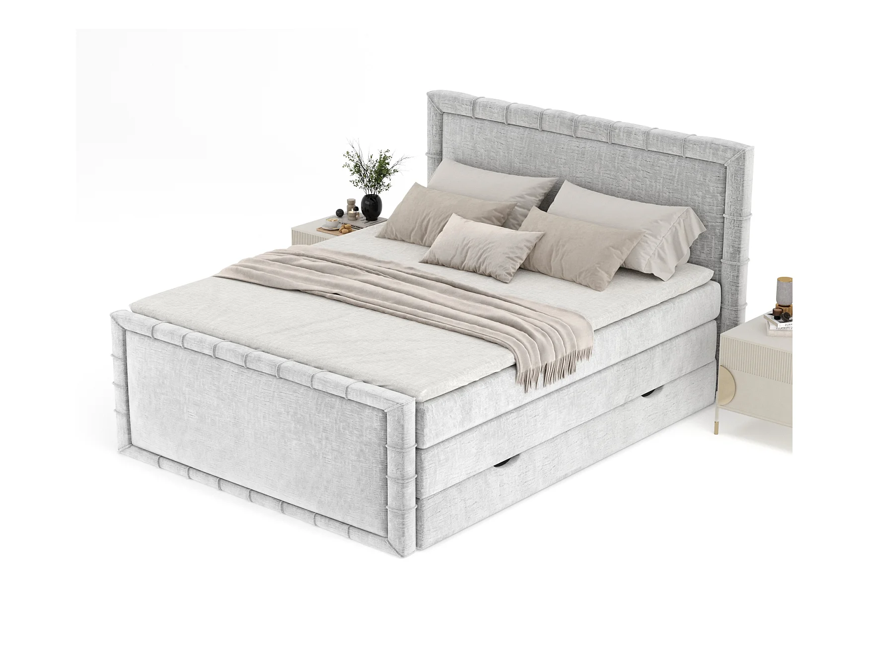 Boxspringbett im Chenille-Stoff Estelle - Matratze - Topper - 180x200 cm - hellgrau