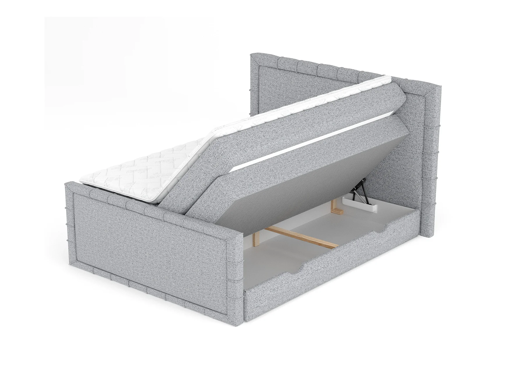 Boxspringbett aus Webstoff Rosabel - Matratze - Toppermatratze - 200x200 cm - grau