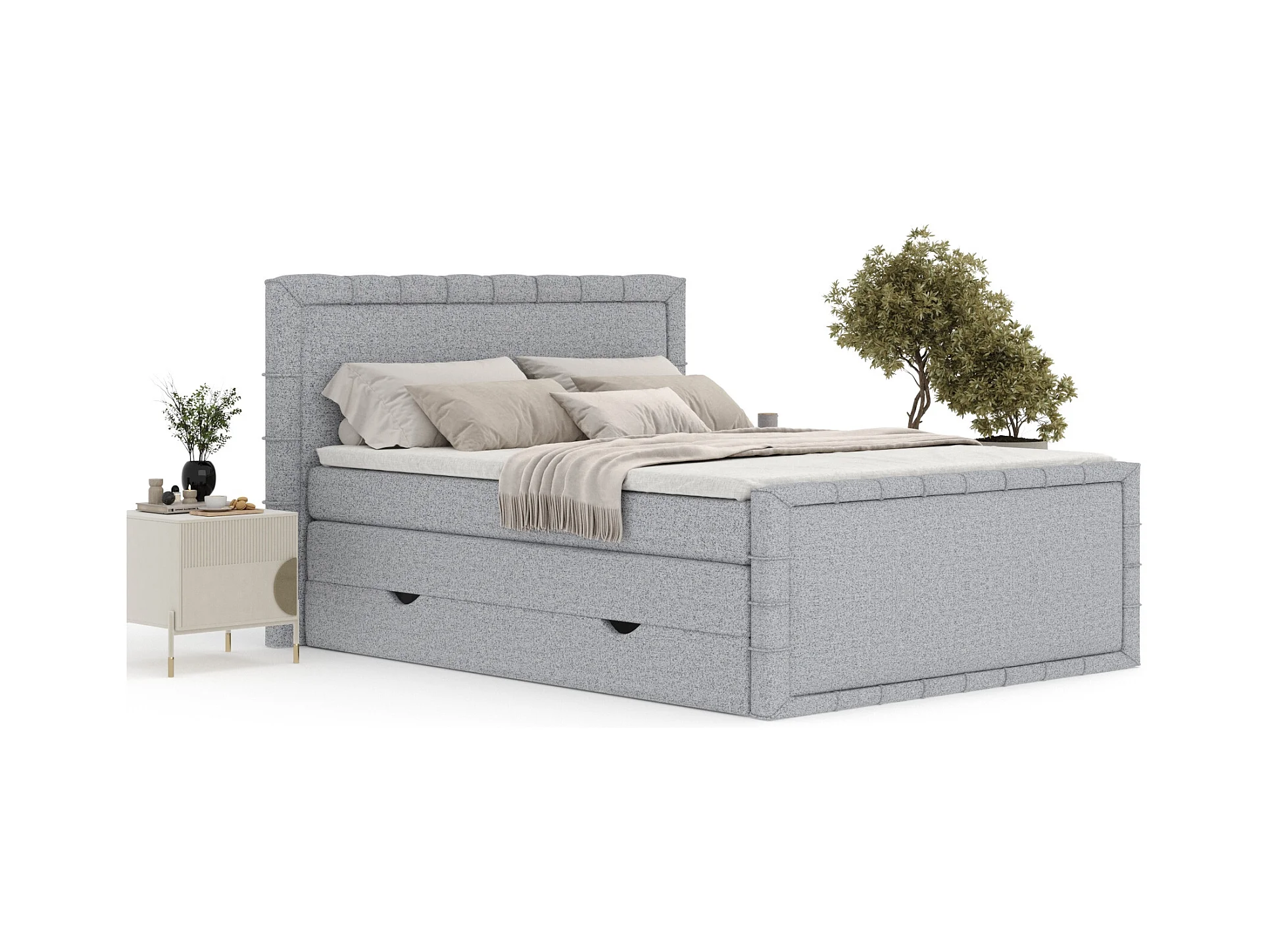 Boxspringbett im Webstoff Estelle - Matratze - Topper - 200x200 cm - grau