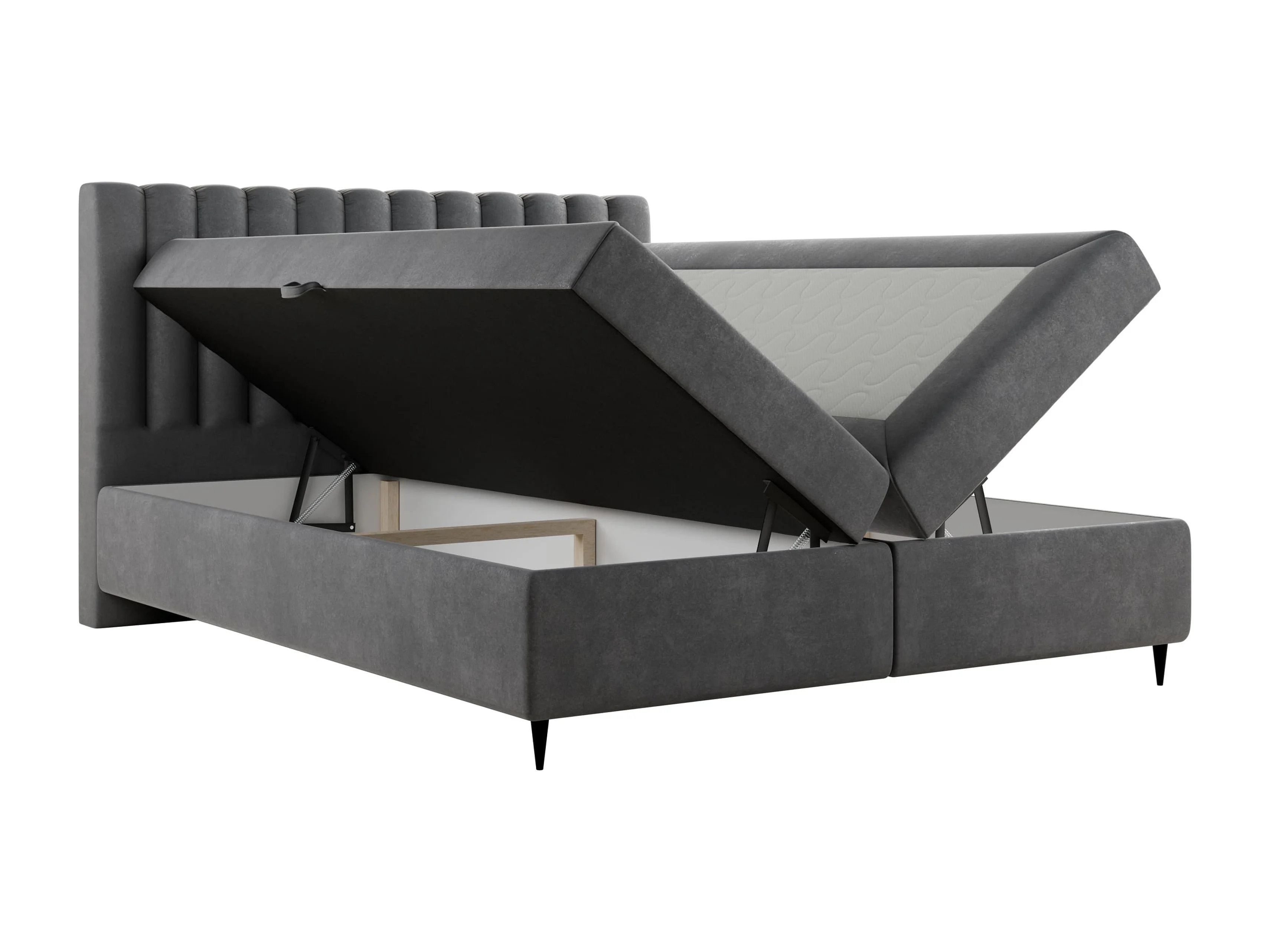 Boxspringbett LUX II, 160x200 cm, Dunkelgrau, inkl. 2 Bettkästen und Topper