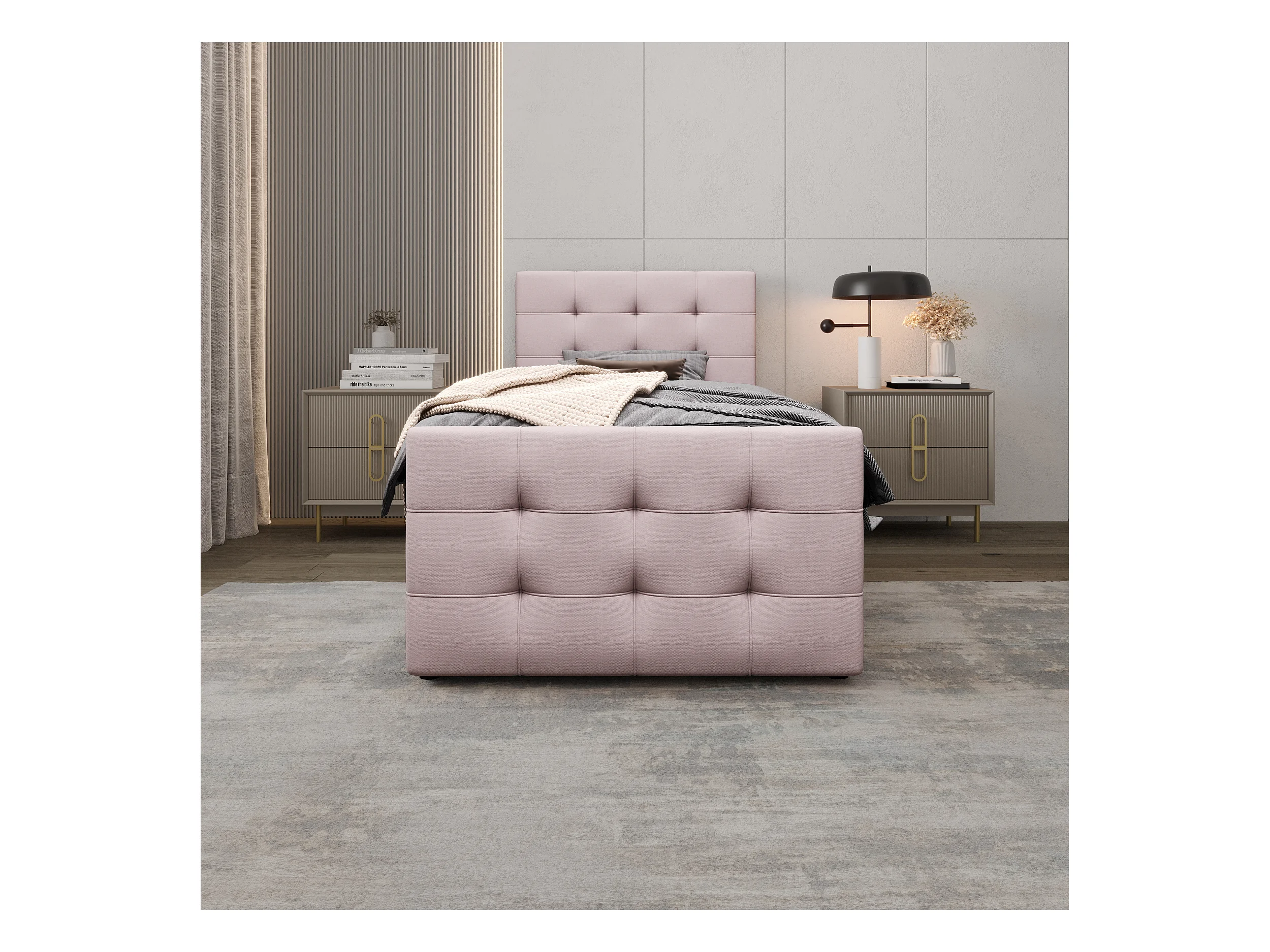 BEDANTE Bett MIKO 90x200 RIVIERA 63+LINCOLN 63 Rosa Bett Jugendbett Einzelbett Hotelbett Matratze Schlafzimmer Stauraum