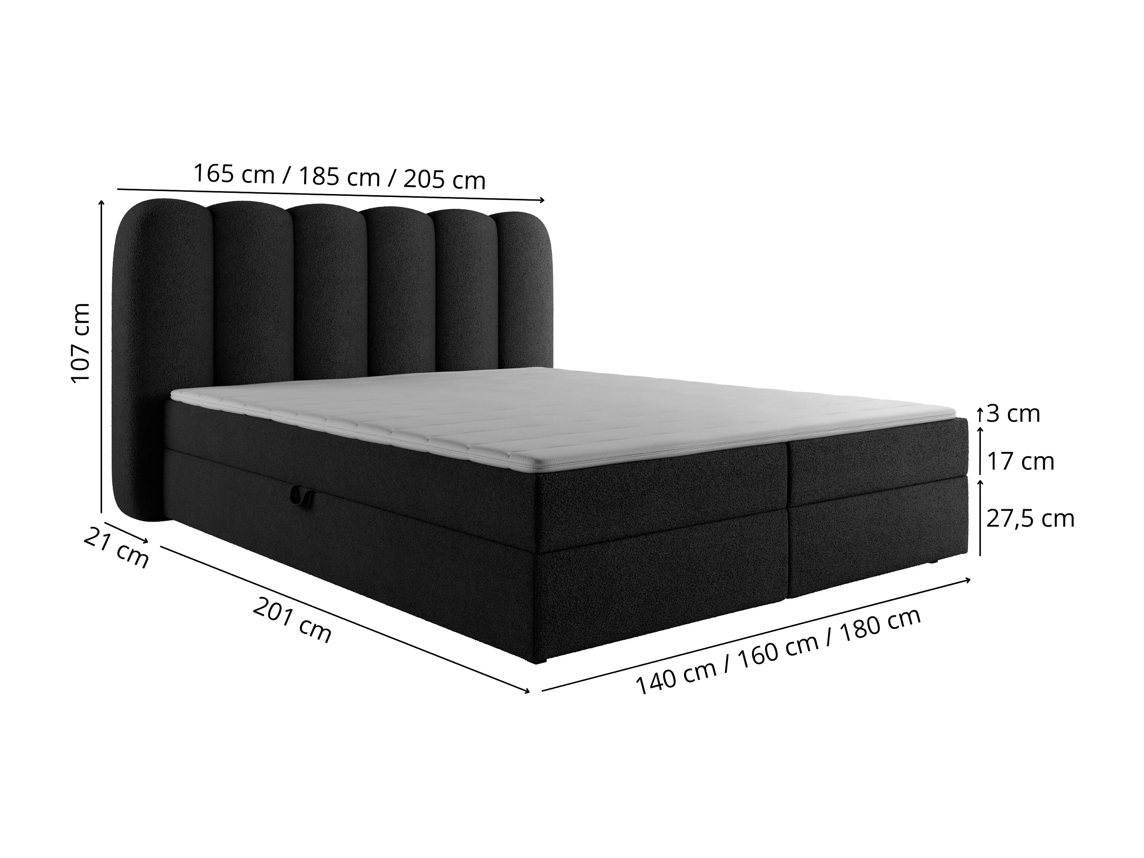 Boxspringbett SOFTI 180x200 Bouclé Anthrazit inkl. Topper, 2 Matratzen & 2 Bettkästen