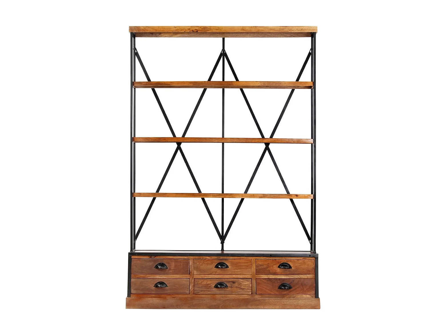 Bücherregal 4 Ebenen 6 Schubladen 122×36×181 cm Massivholz