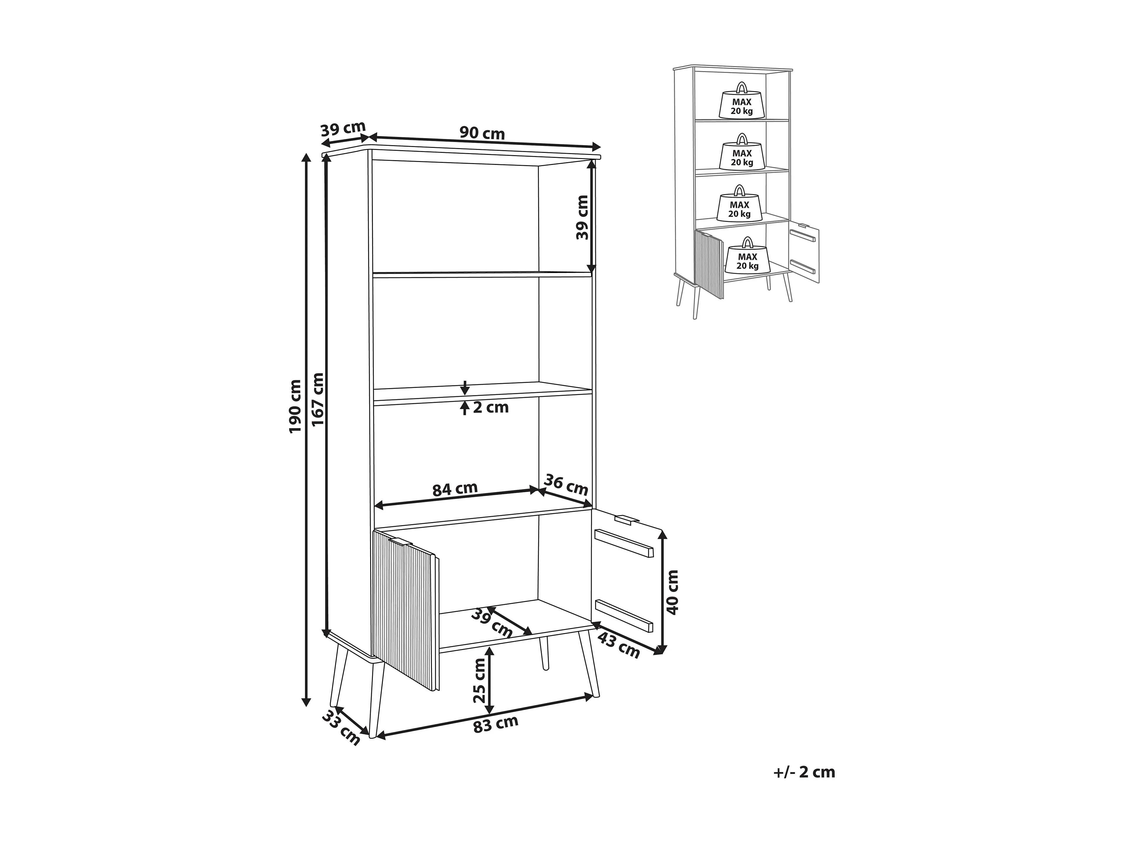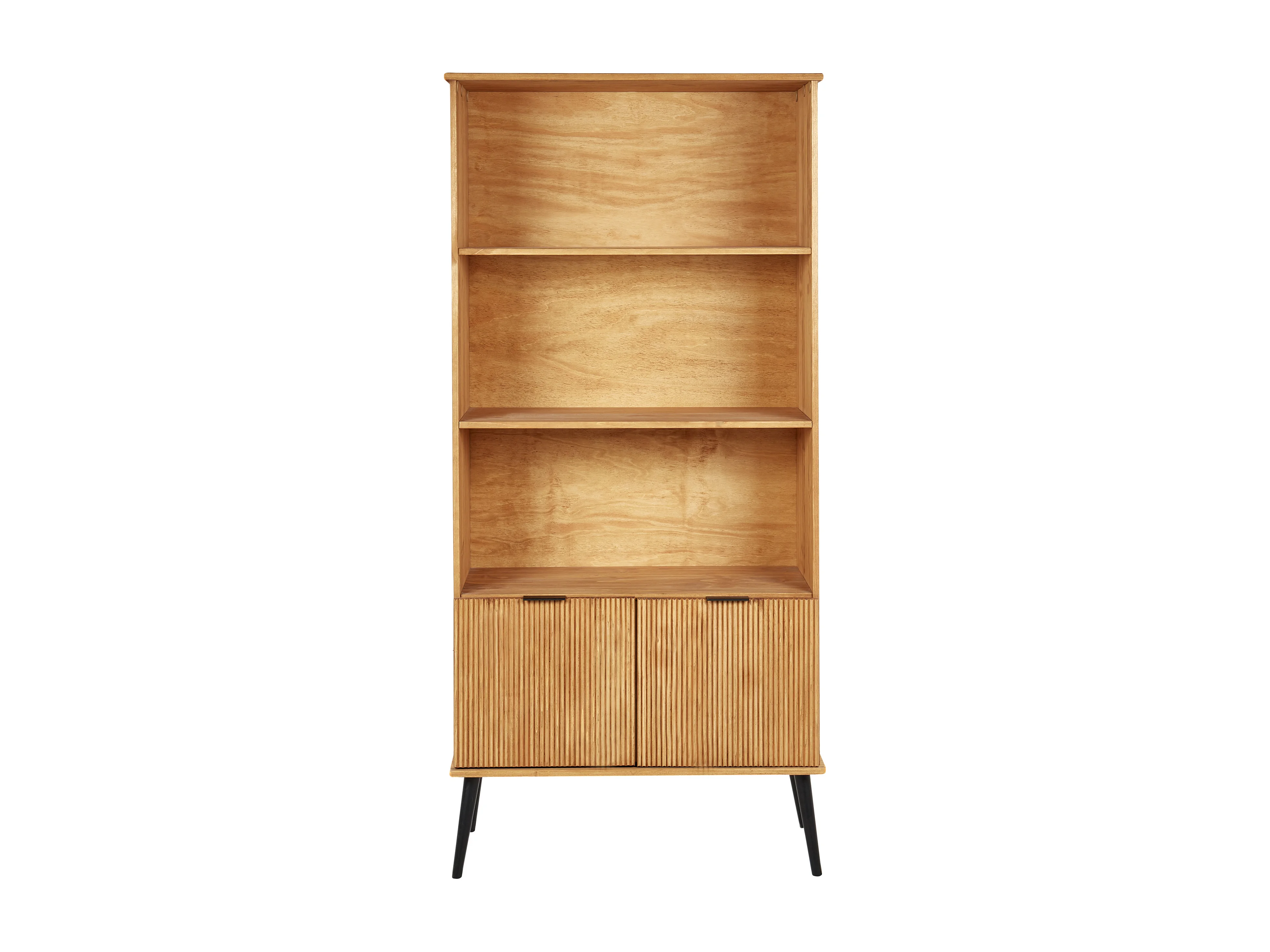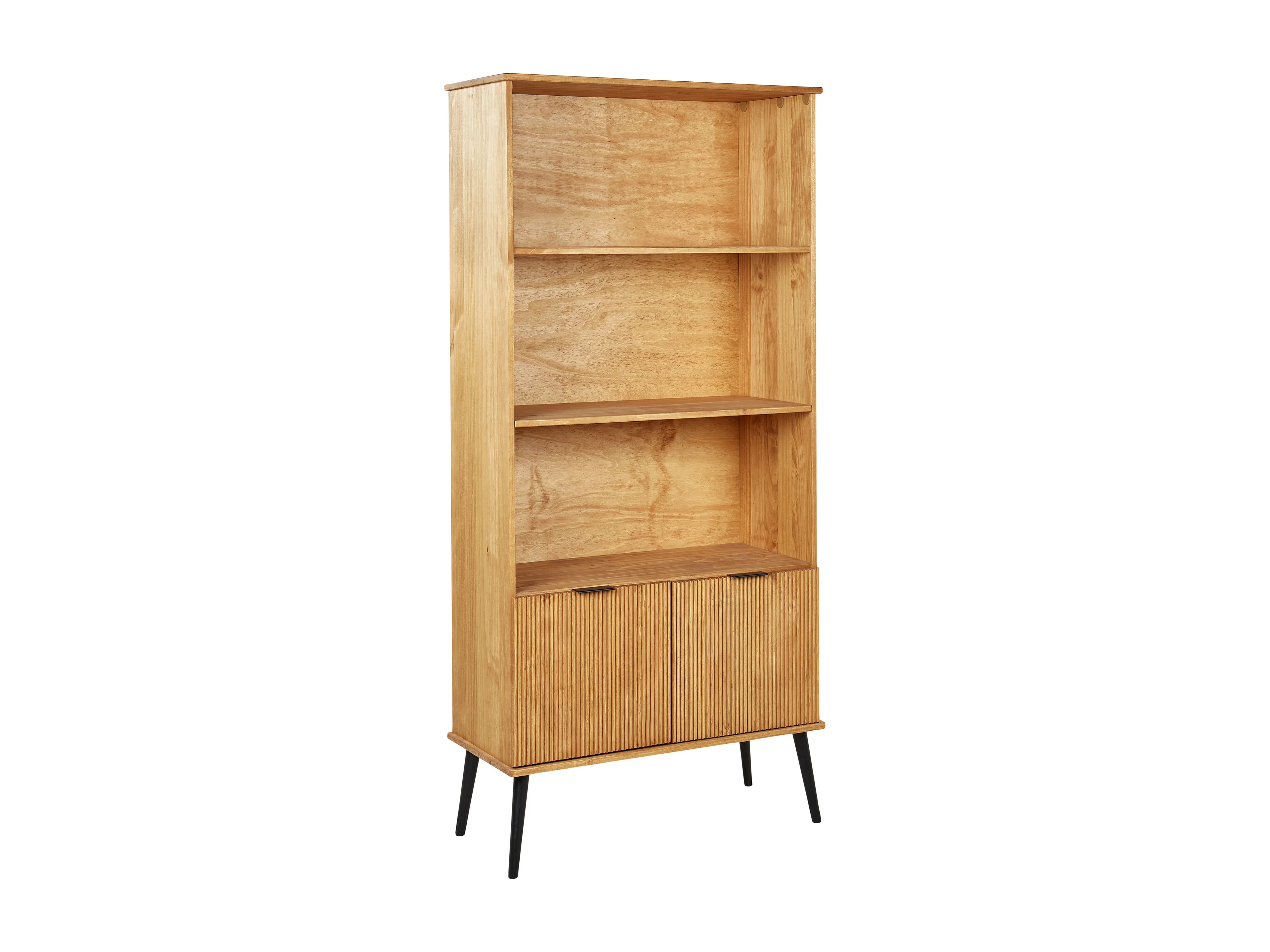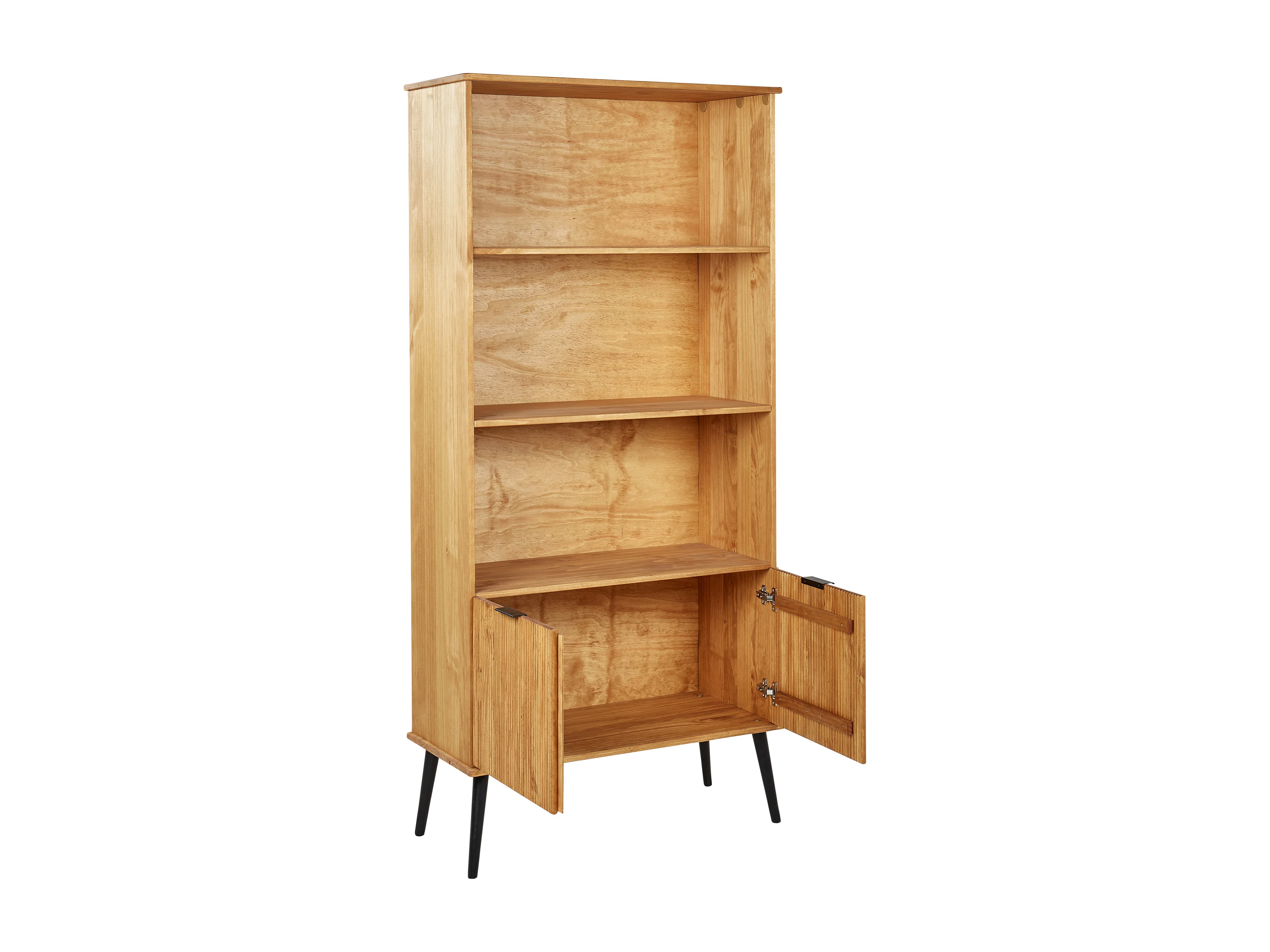 Bücherregal Kiefernholz heller Holzfarbton mit 2 geriffelten Türen Timmins