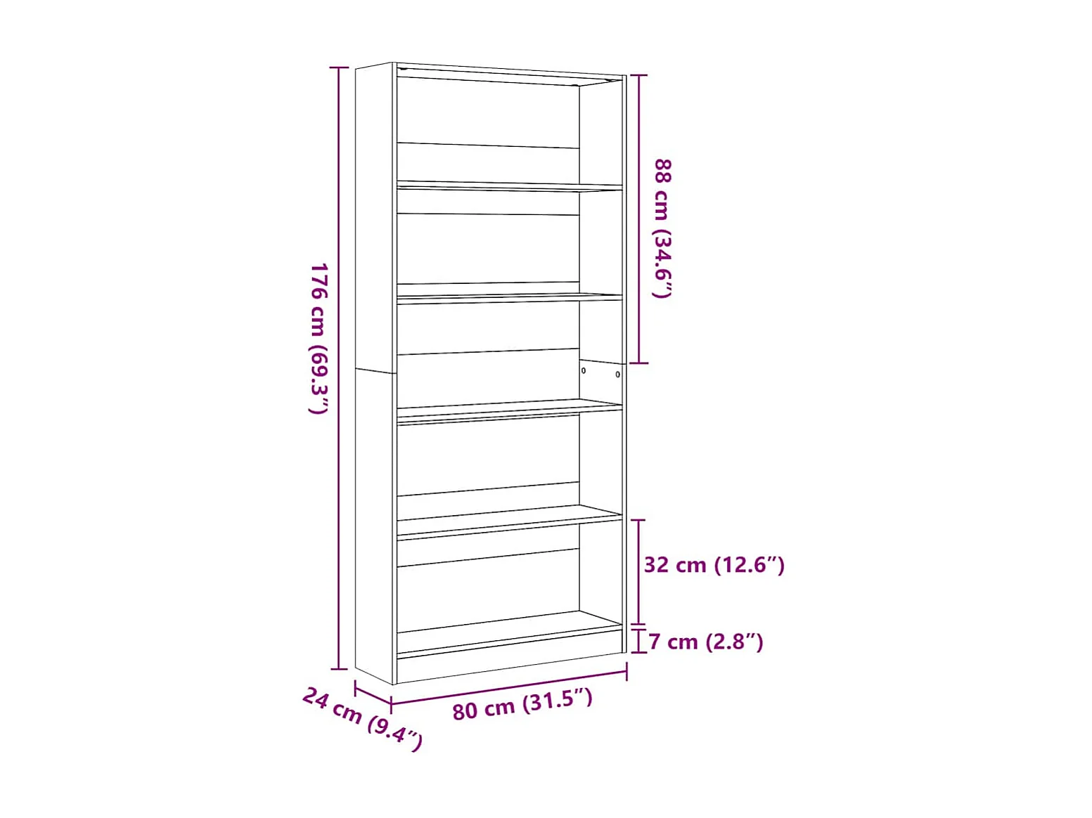 Bücherregal Weiß 80x24x176 cm Holzwerkstoff