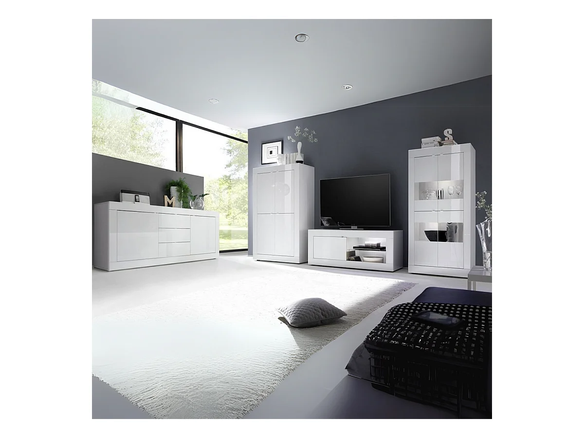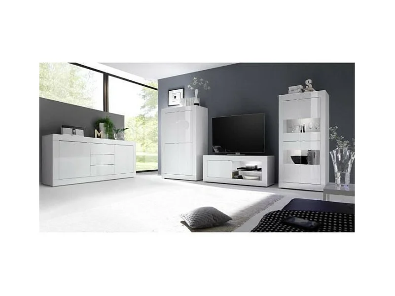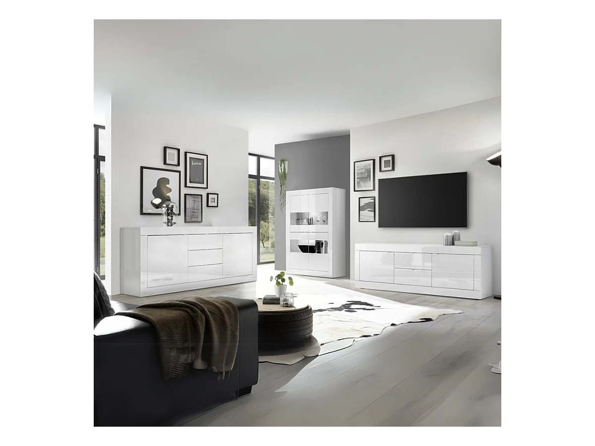 Modernes Hochglanz-Sideboard – 4 Türen mit 4 verstellbaren Einlegeböden und 4 Schubladen – Weiß
