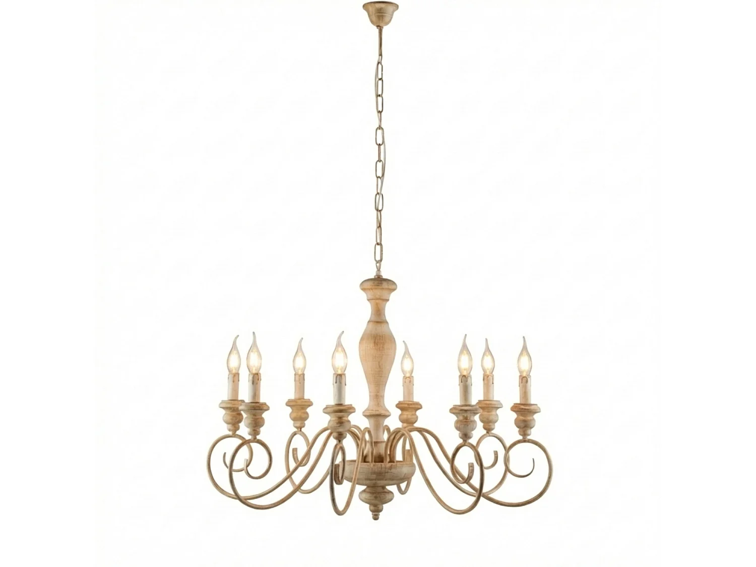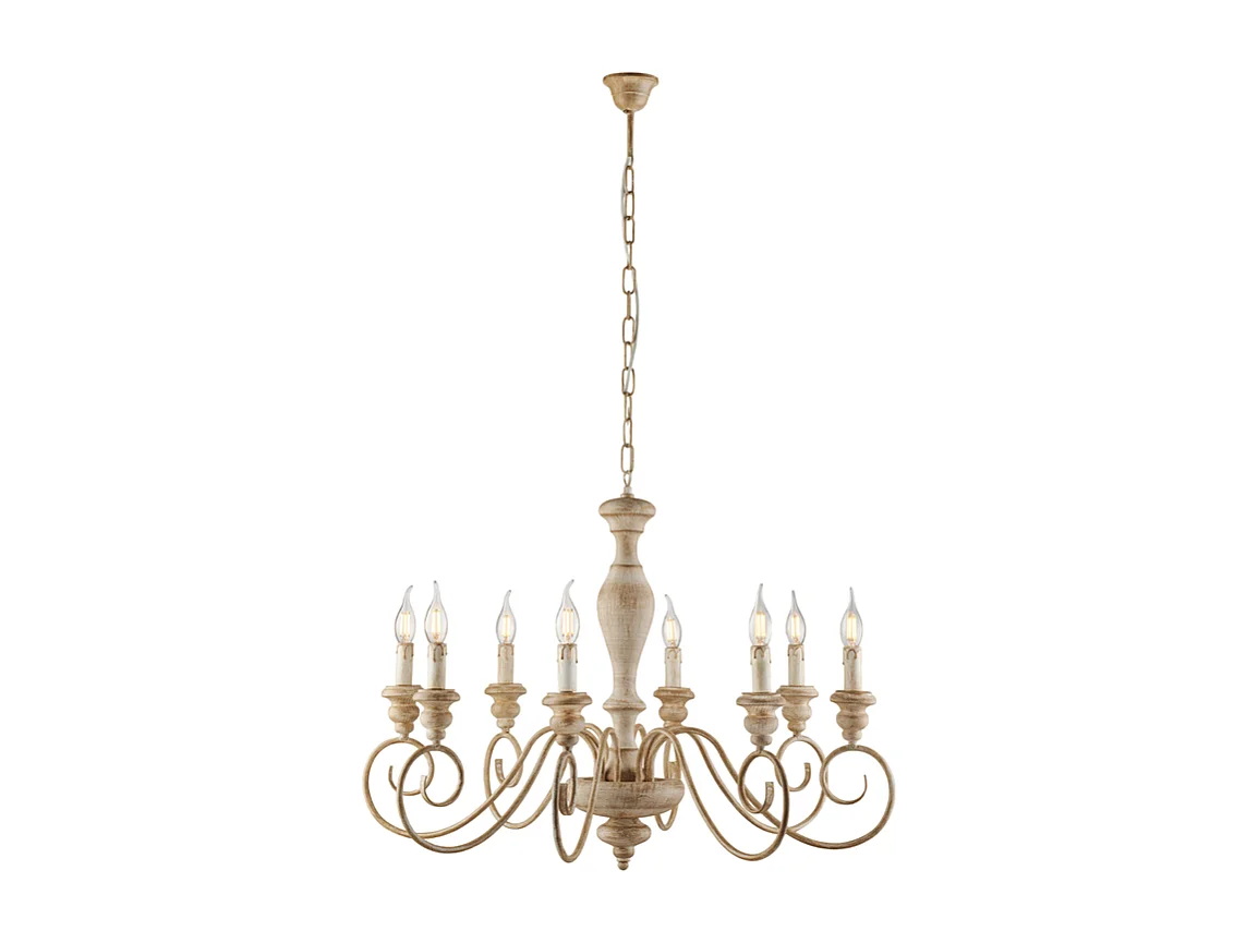 Cascina - Kronleuchter aus weißem und taubengrauem Holz und Eisen, 8 Lichter, 121 - Ø82 - BL265-8-BT