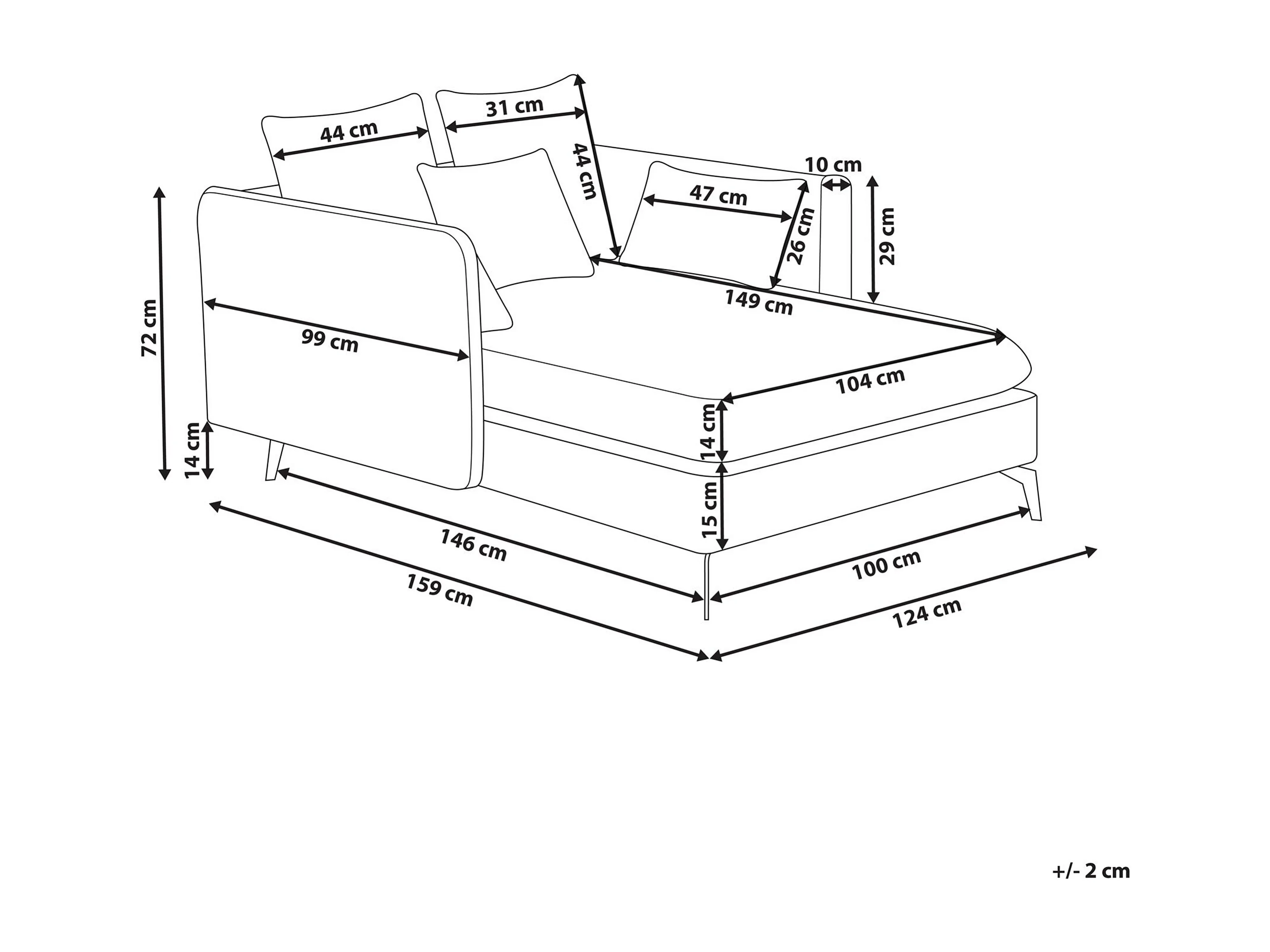 Chaiselongue Stoffbezug grün mit mehreren Kissen schlanke Armlehnen Charmes