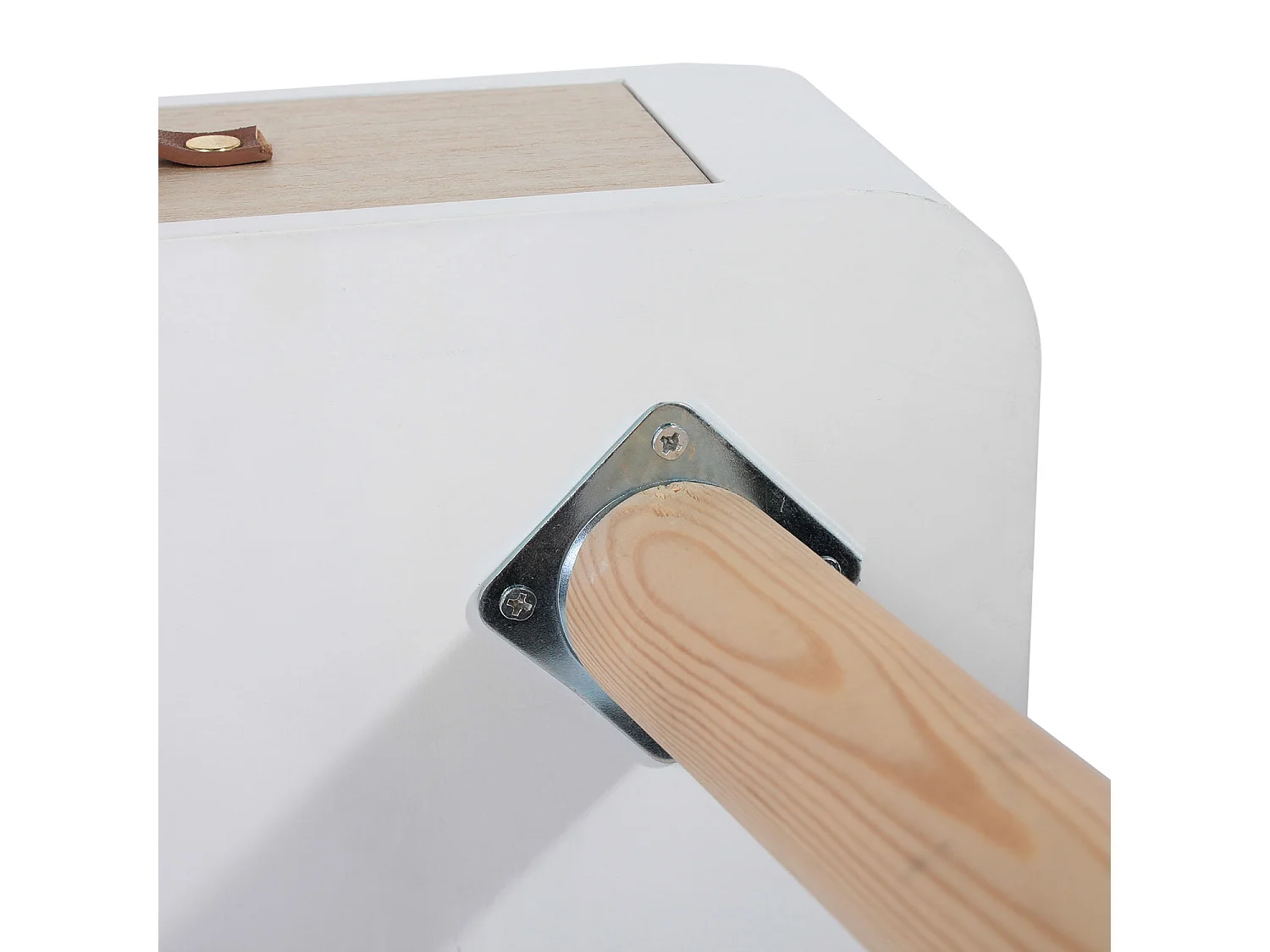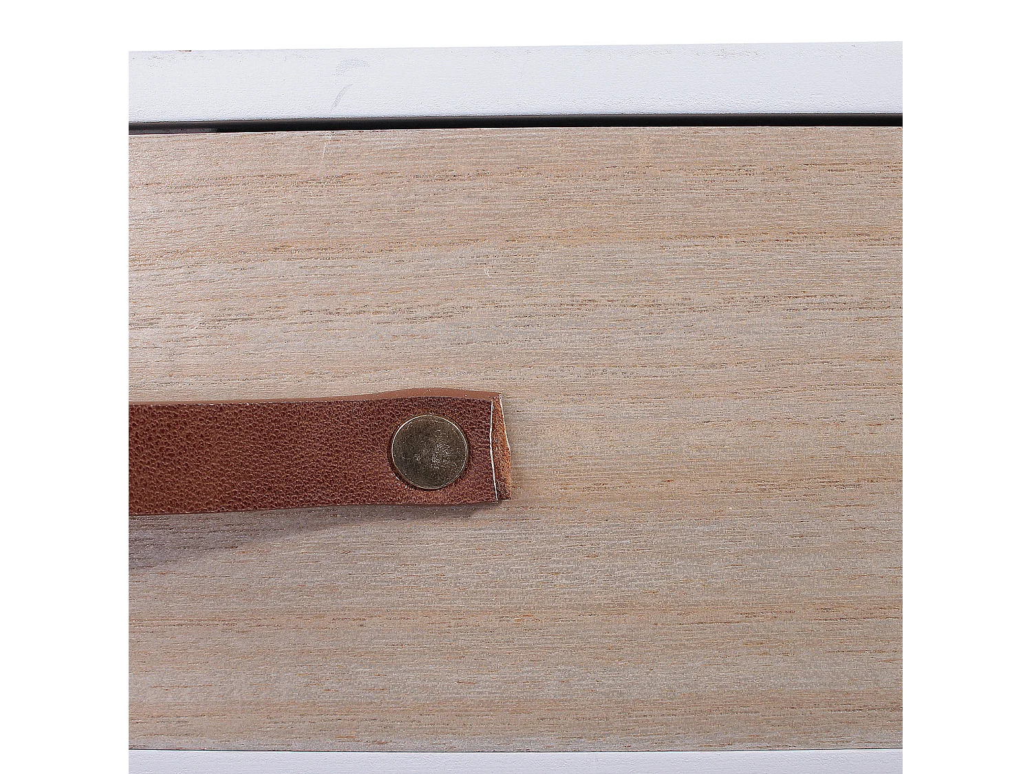 Skandinavischer Nachttisch mit Schublade und Henkel aus Leder
