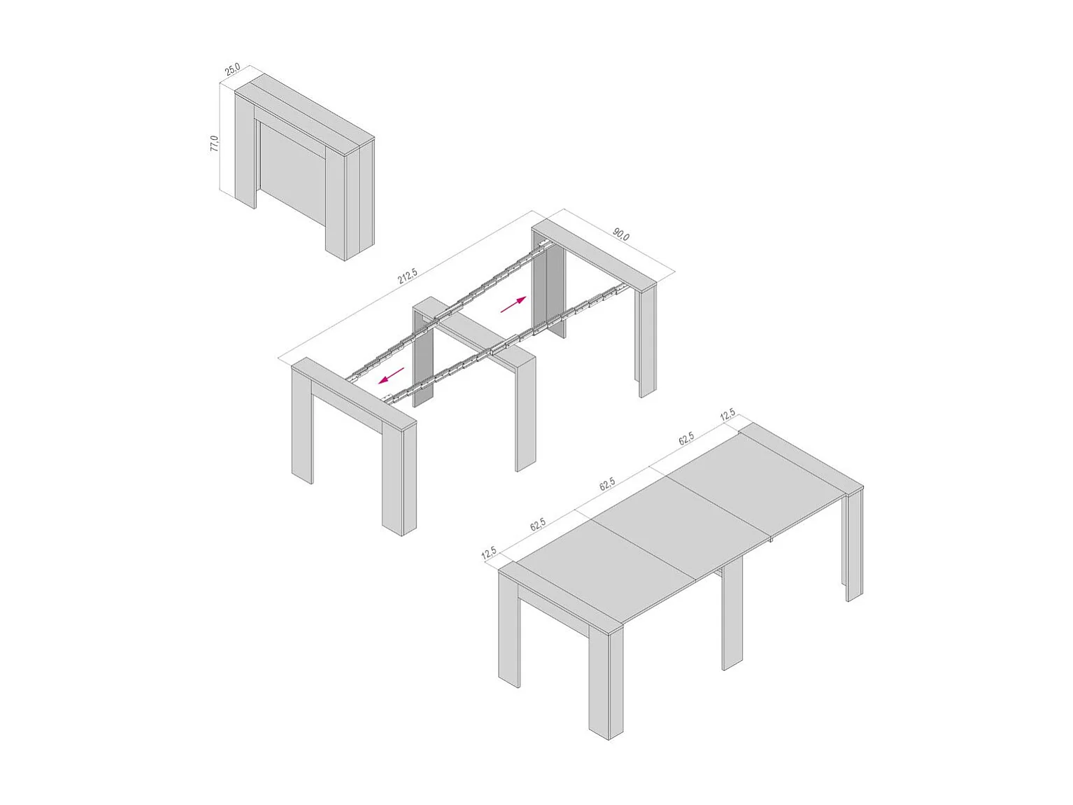 CLARA - Schlanker ausziehbarer Konsolentisch aus Eiche von 25 cm bis 2 Meter - integrierte Erweiterungen - für bis zu 8 Personen - kostenloser Versand