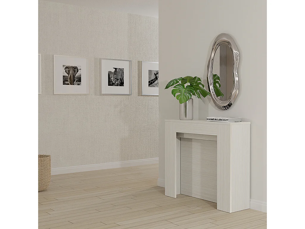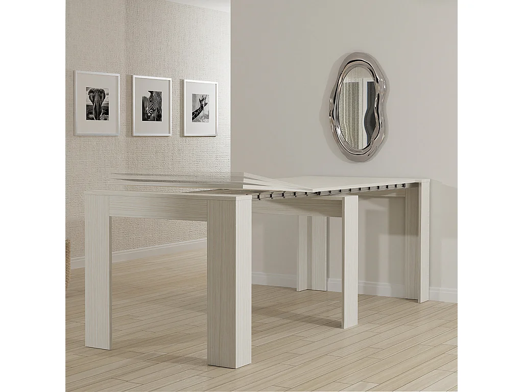 CLARA - Schlanker weißer ausziehbarer Konsolentisch von 25 cm bis 2 Meter - integrierte Erweiterungen - für bis zu 8 Personen - kostenloser Versand