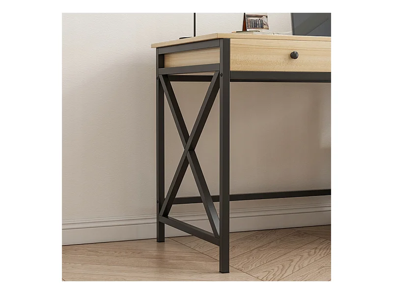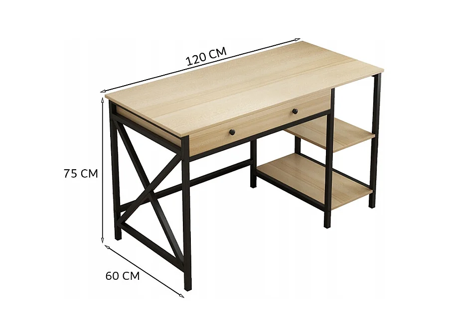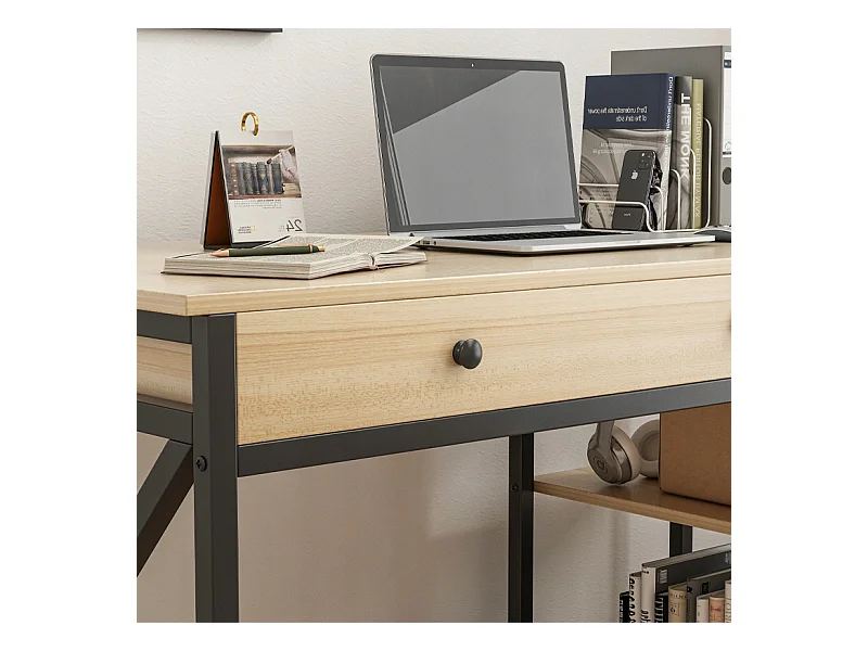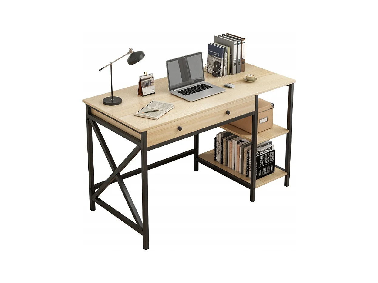 COMPUTER-SCHREIBTISCH INDUSTRIELL SCHUBLADE REGALE HELLES SKANDINAVISCHES EICHENHOLZ