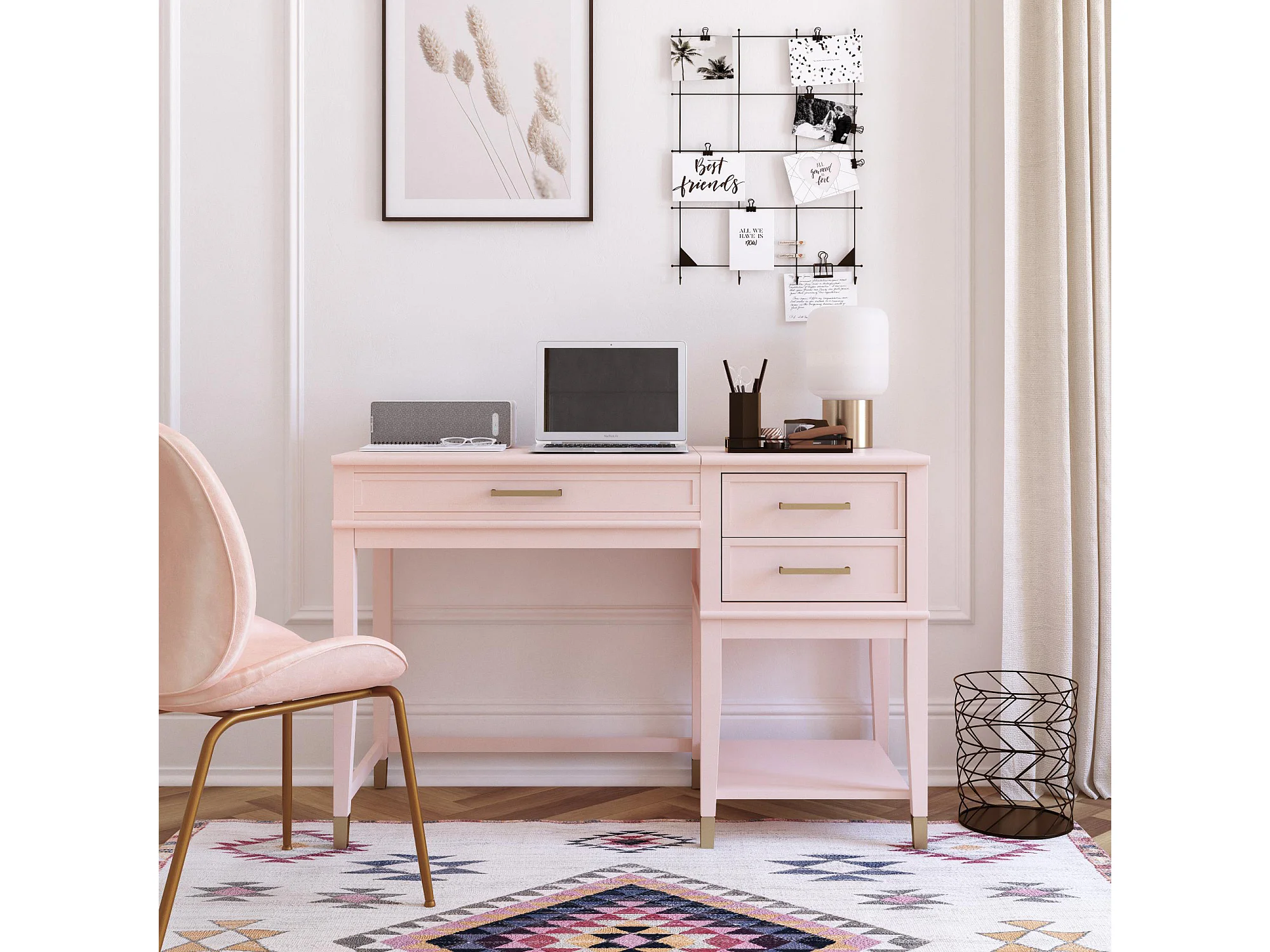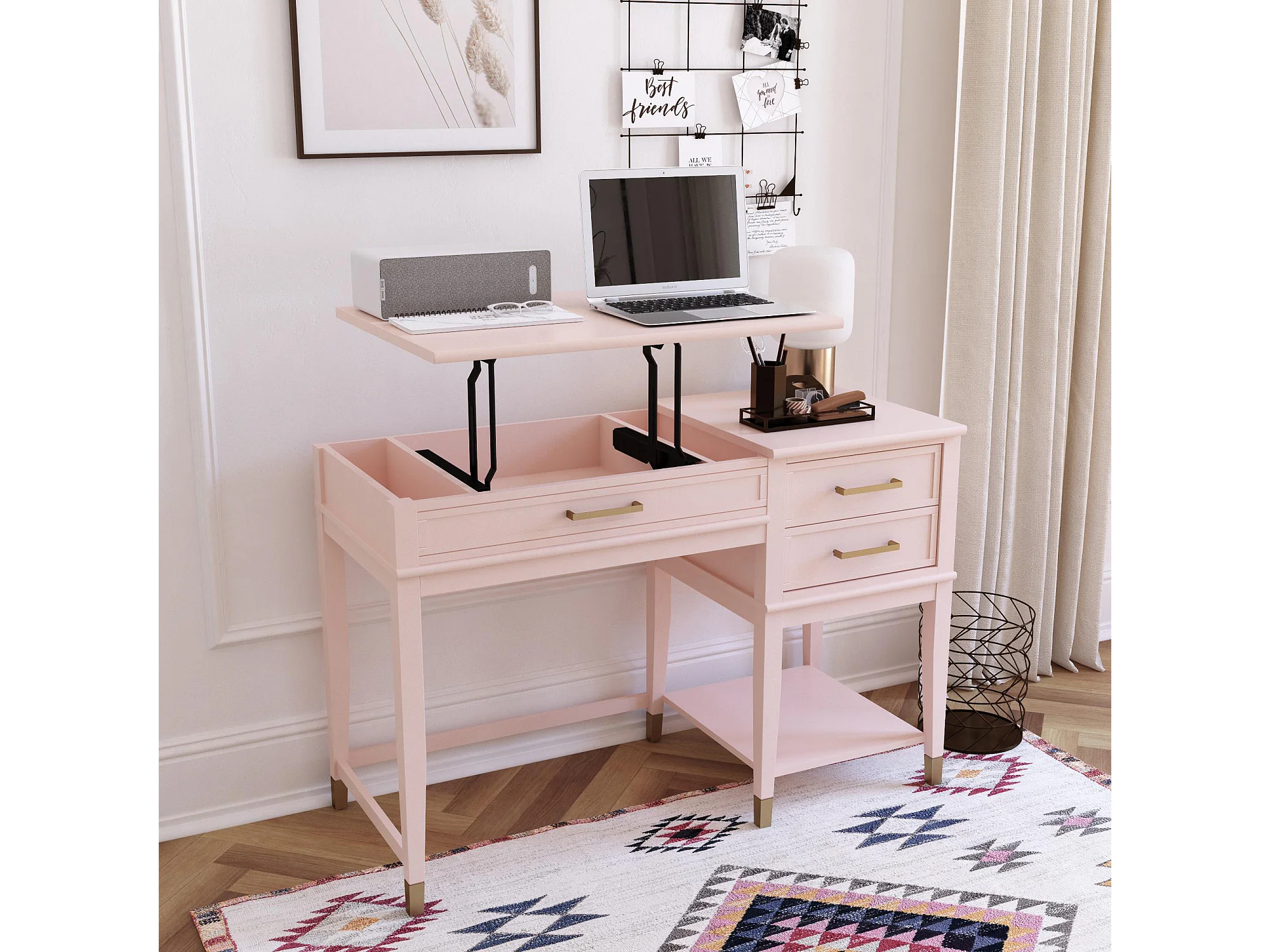 Computertisch mit Hubplatte in MDF-Rosa