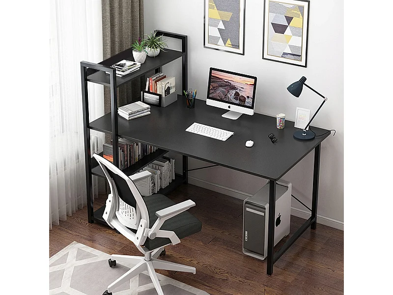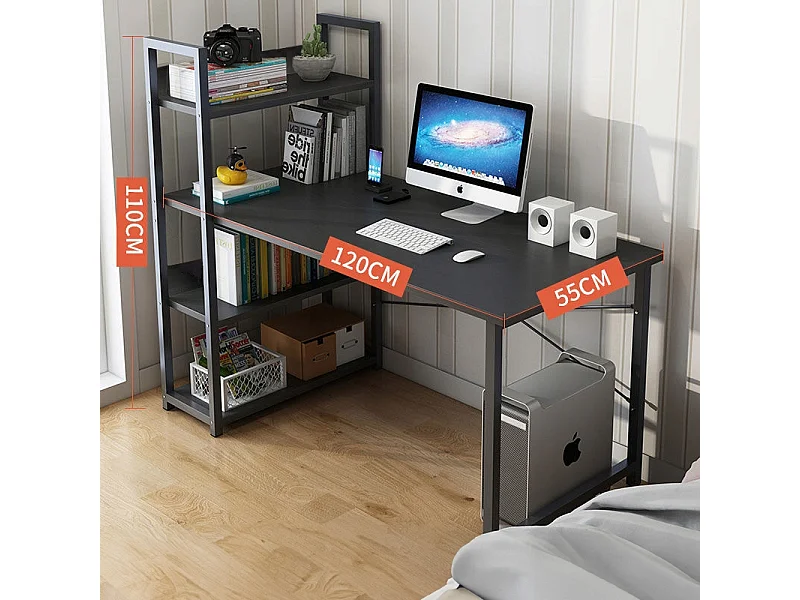 COMPUTERTISCH TISCH SCHWARZER JUGENDTISCH MIT REGAL UND REGALBÖDEN