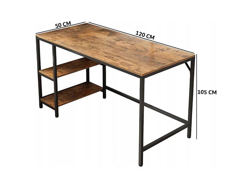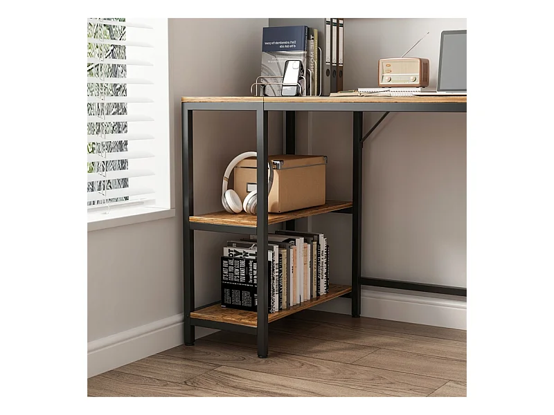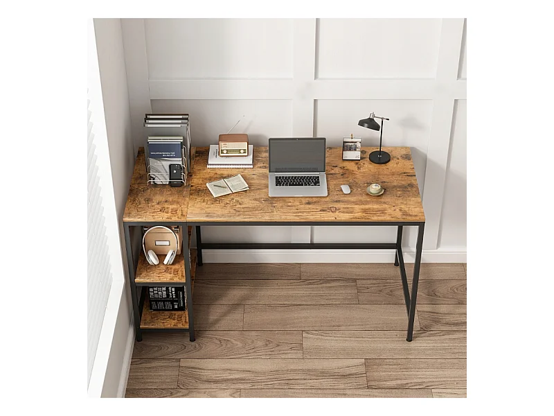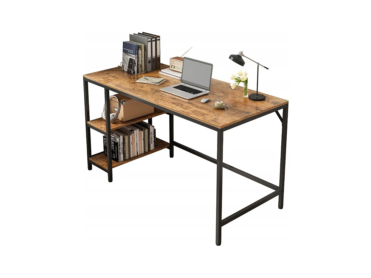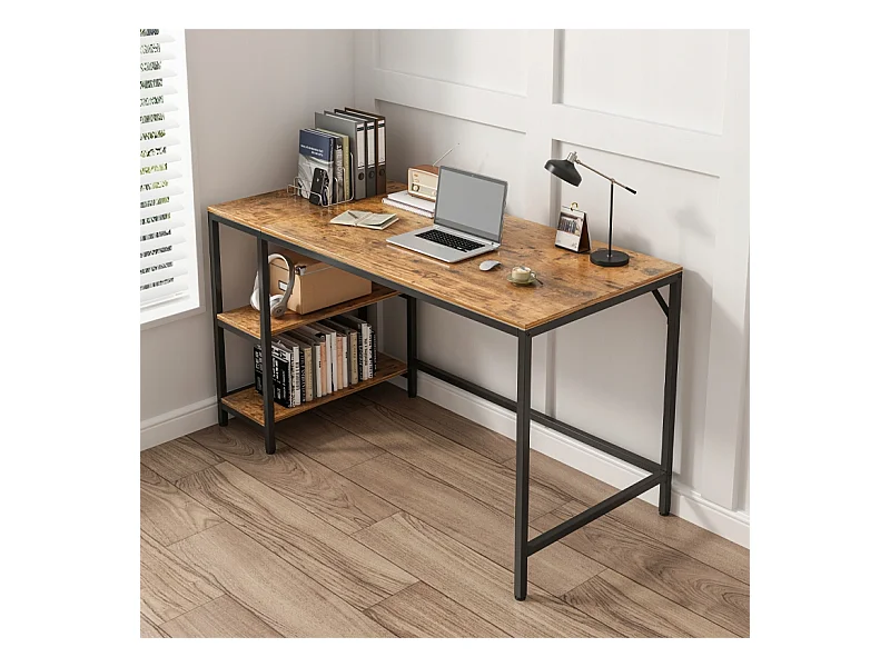 Computertisch vintage rustikal braun mit 2 regalen loft 140 cm