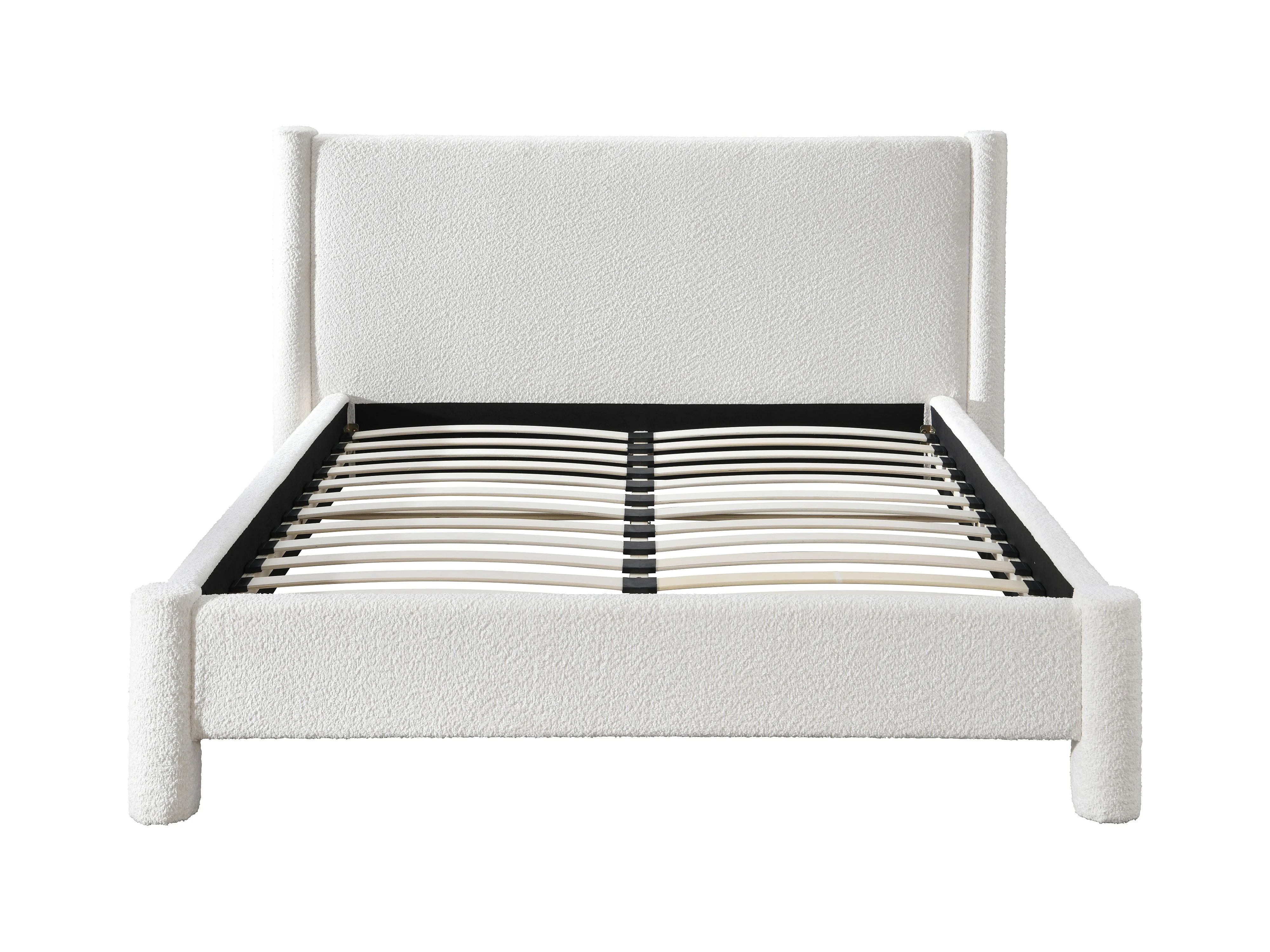 Bett + Matratze - 160 x 200 cm - Bouclé-Stoff - Weiß - CONOMO