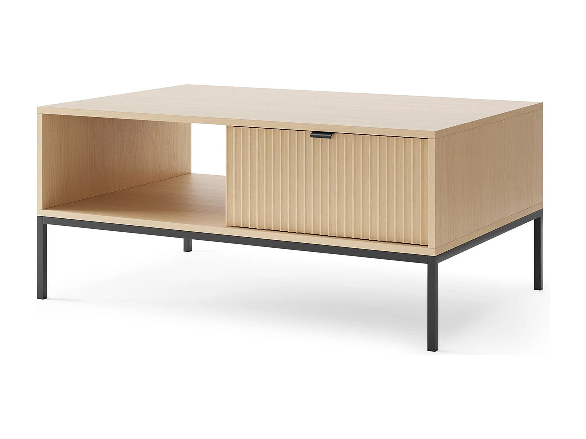 Couchtisch 104 x 68 cm – mit Schublade und schwarzem Gestell – Holzoptik Eiche – VELLORE