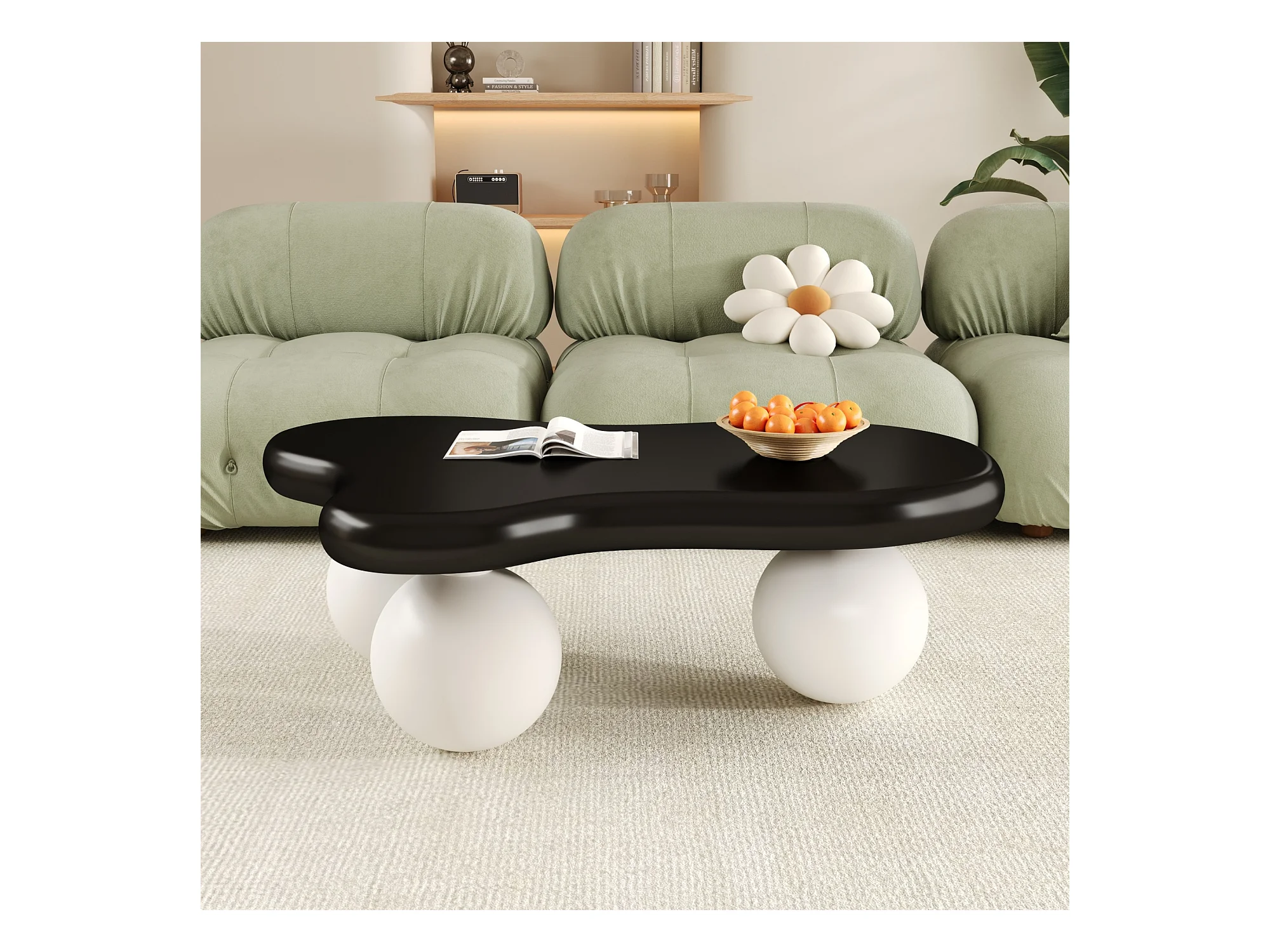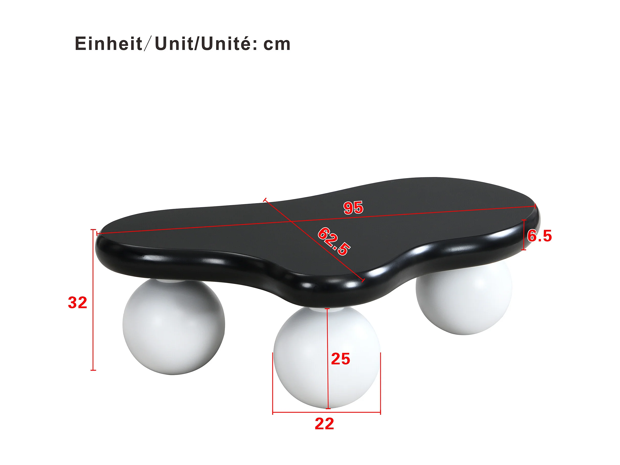 Couchtisch 95x62,5x32 cm - Wolkenform - mit LED-Beleuchtung - runde Beine - schwarz + weiß