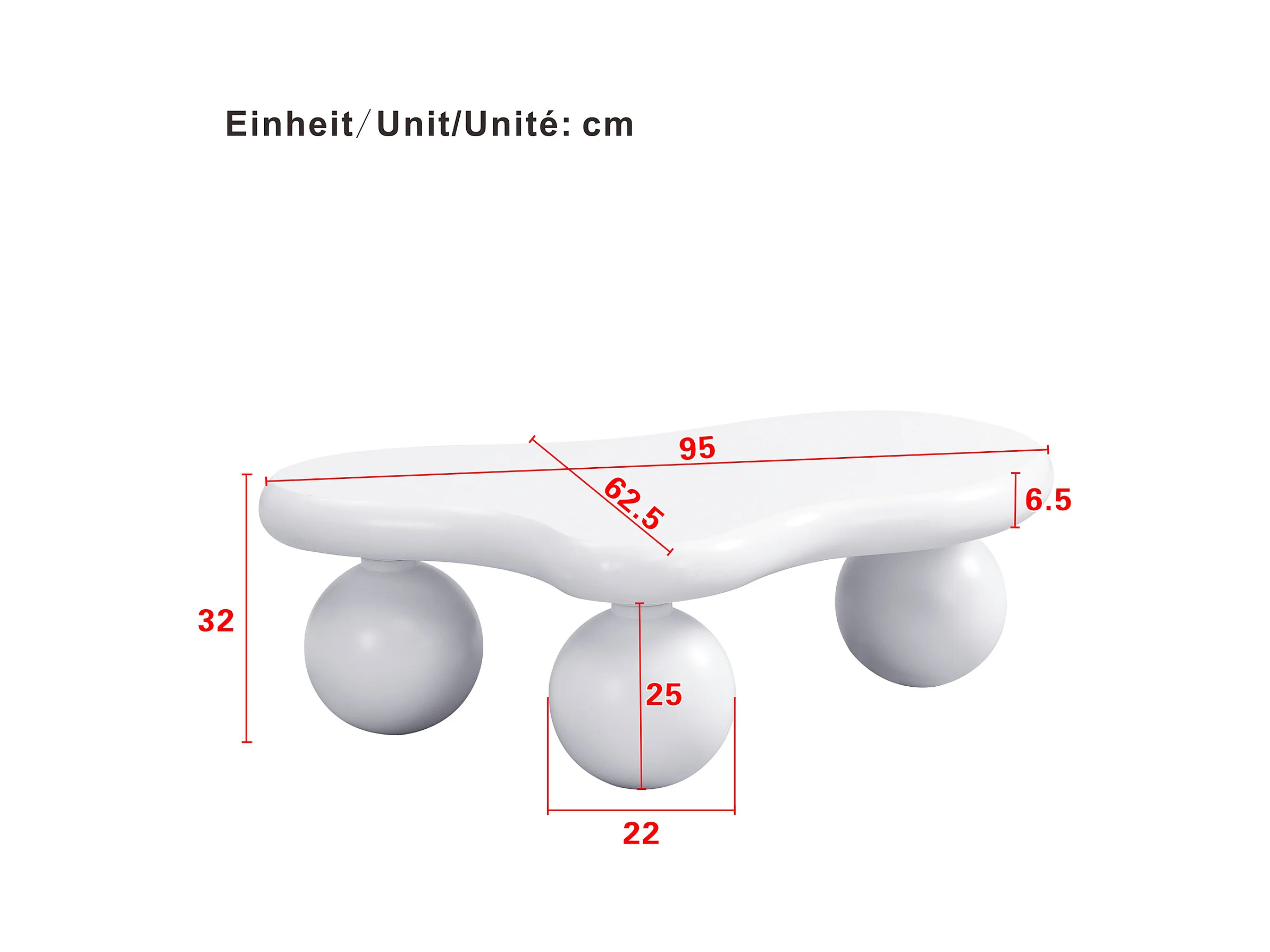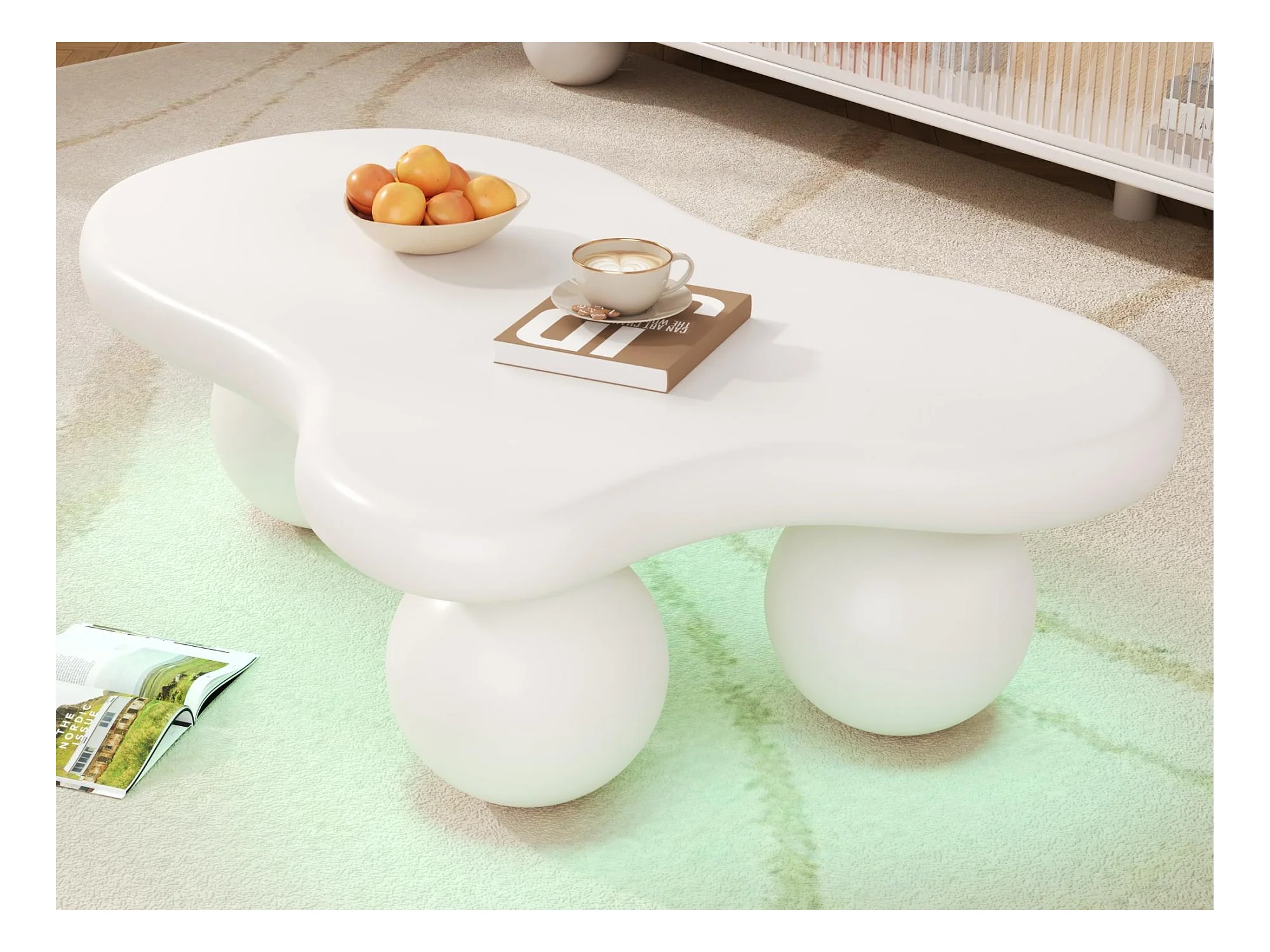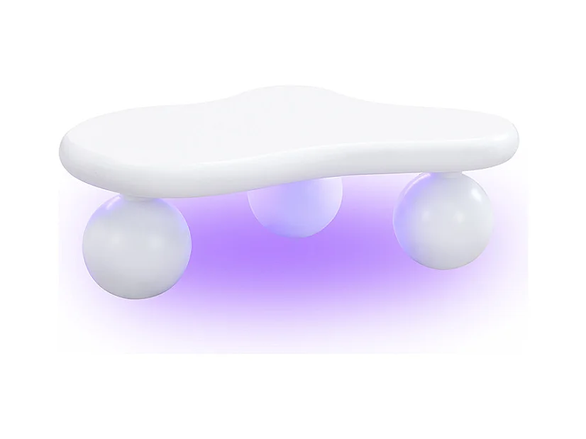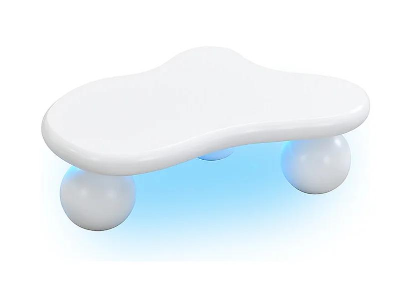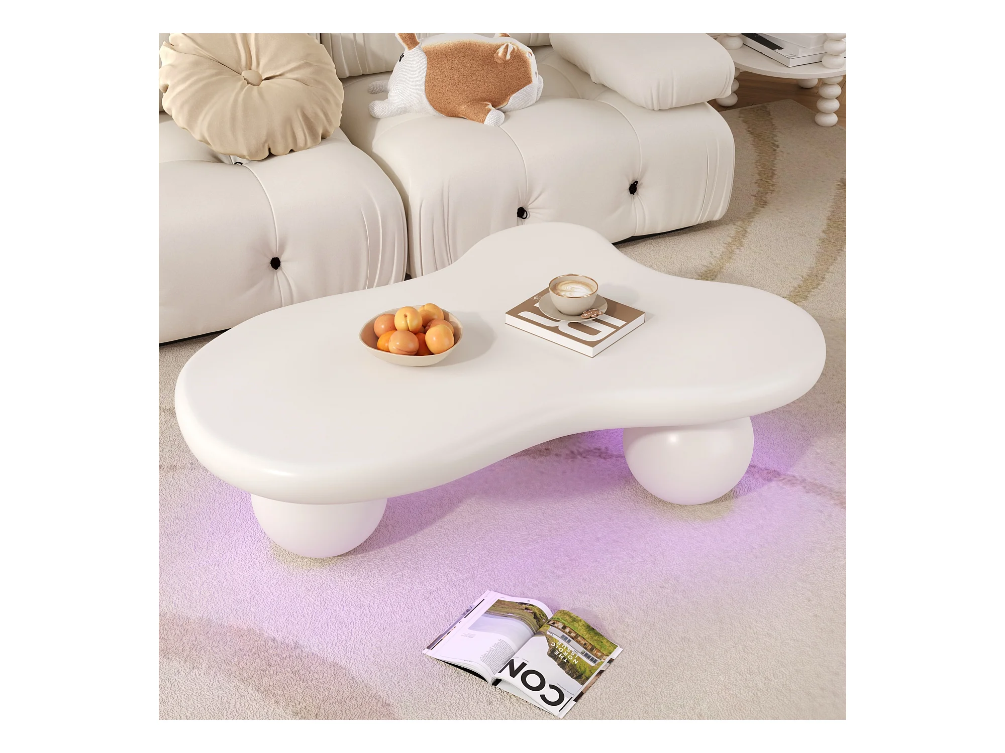 Couchtisch 95x62,5x32 cm - Wolkenform - mit LED-Beleuchtung - runde Beine - weiß