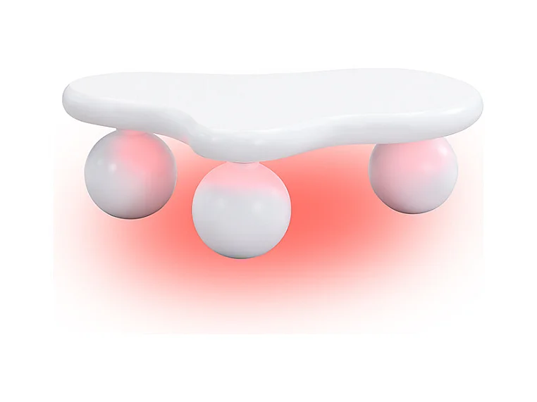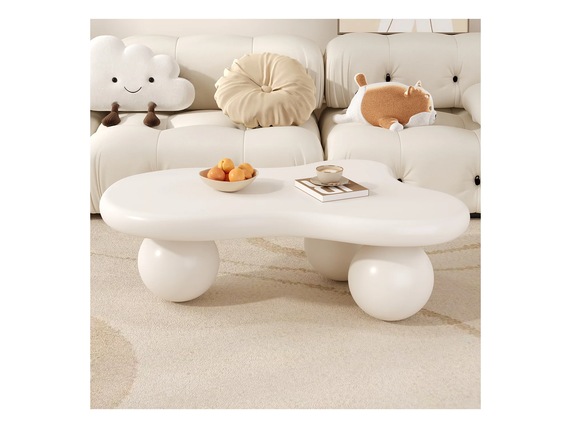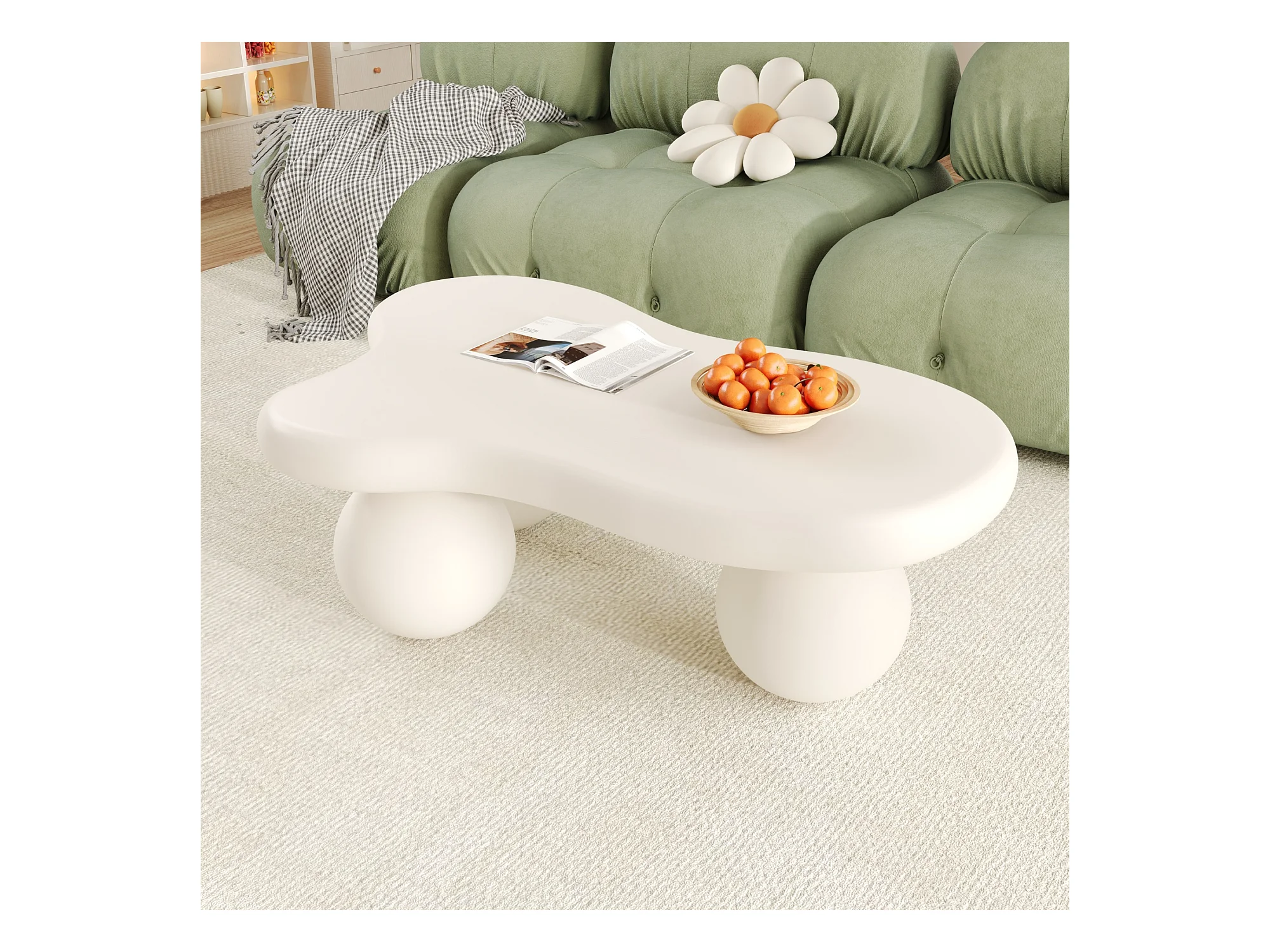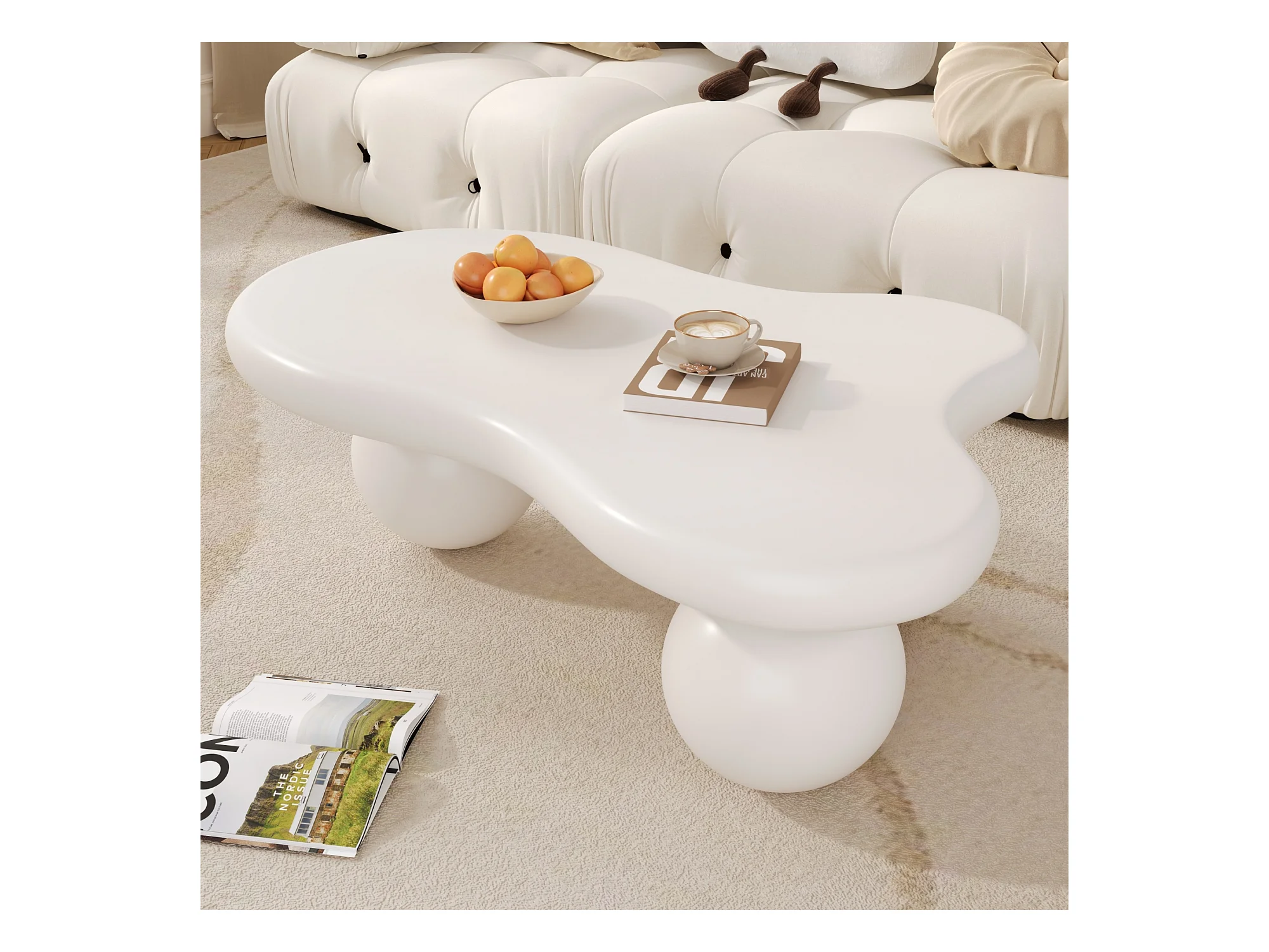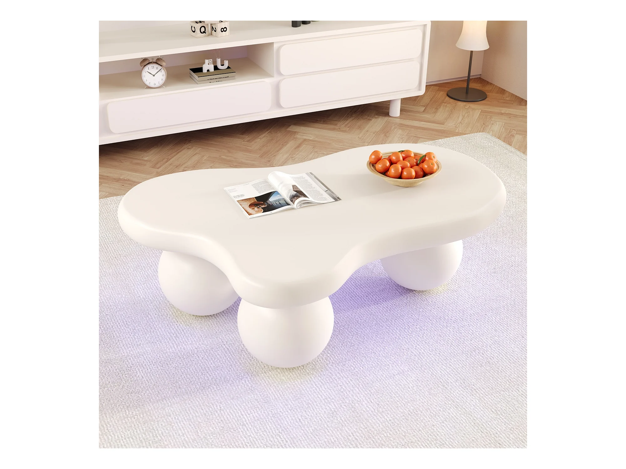 Couchtisch 95x62,5x32 cm - Wolkenform - mit LED-Beleuchtung - runde Beine - weiß