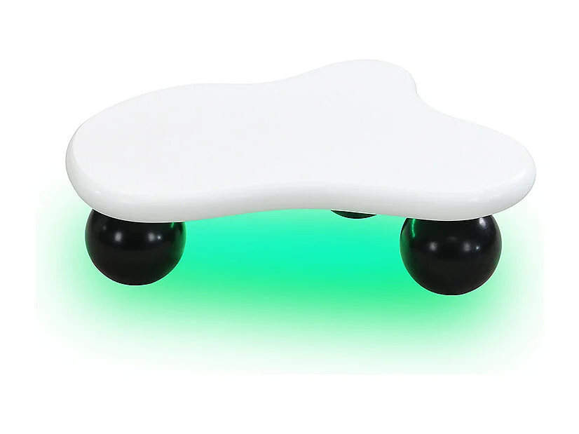 Couchtisch 95x62,5x32 cm - Wolkenform - mit LED-Beleuchtung - runde Beine - weiß + schwarz