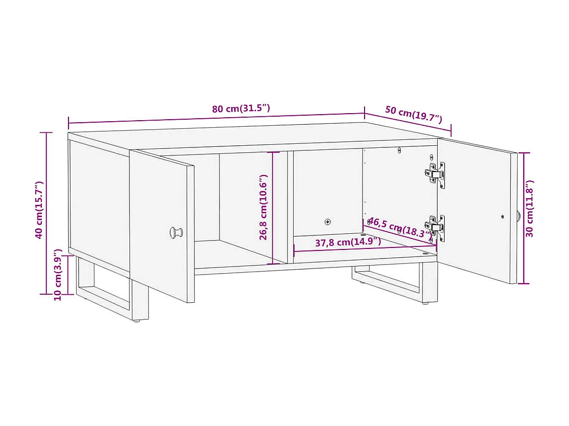 Couchtisch 80x50x40 cm Massivholz Mango