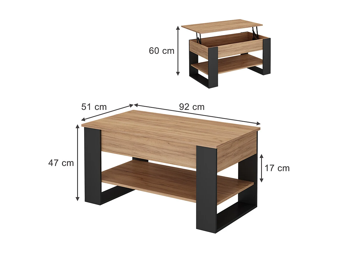 Couchtisch eiche/anthrazit 92x51x47 lifto