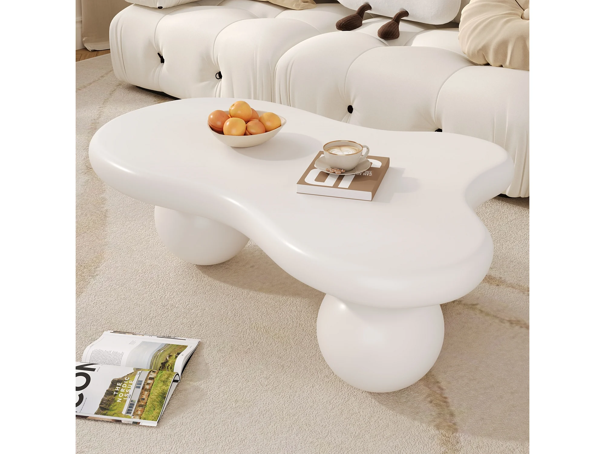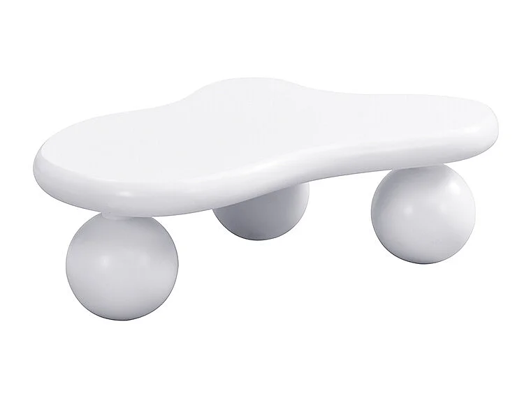 Couchtisch mit LEDs - 95 x 62,5 x 32 cm - Wolkenförmiges Design und runde Beine - Reinweiß