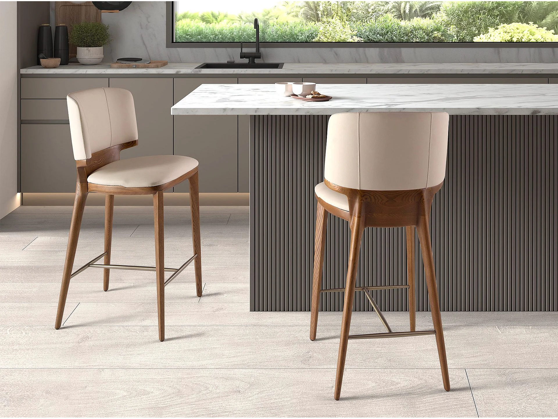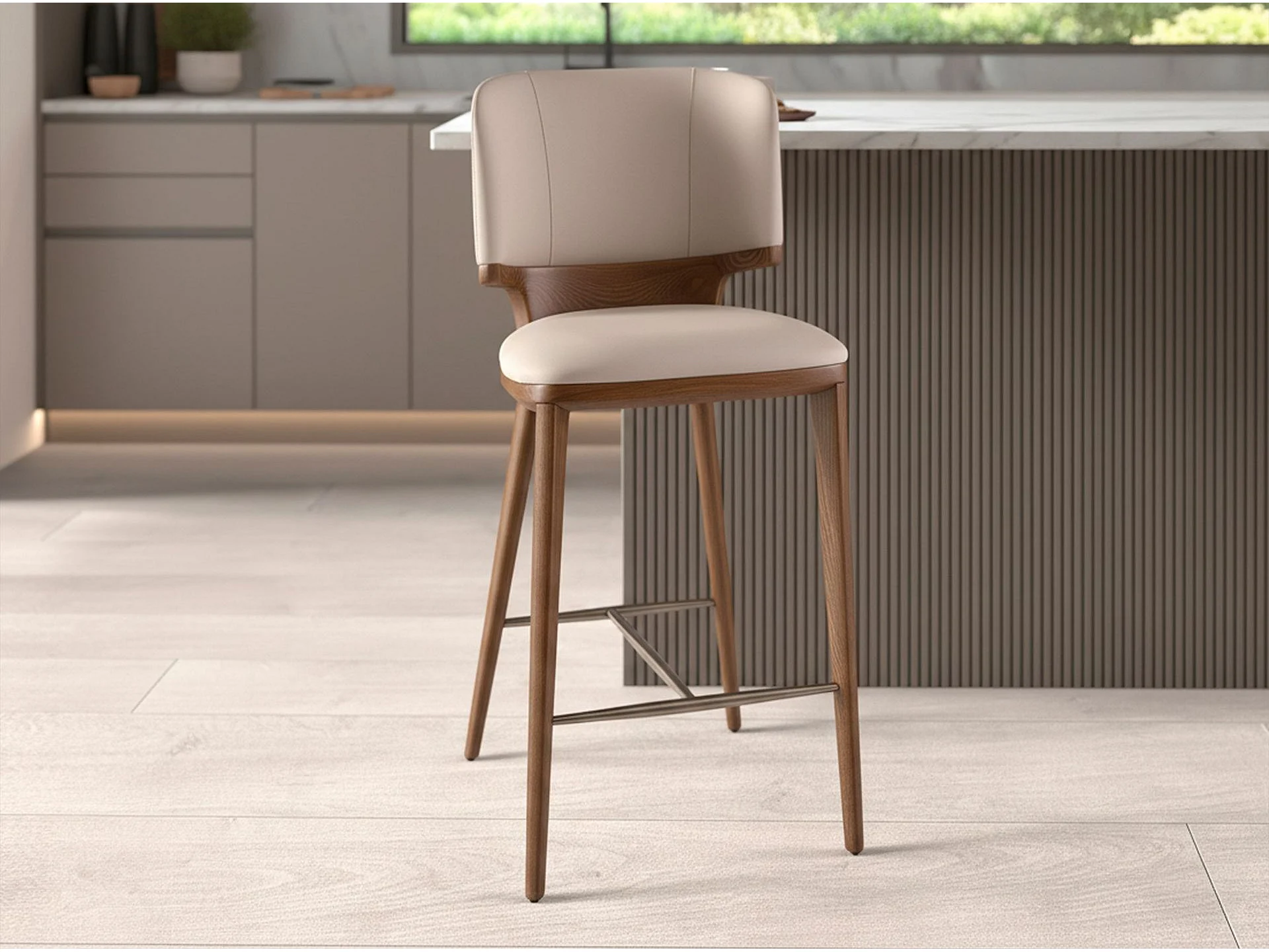 Creme Kunstlederhocker