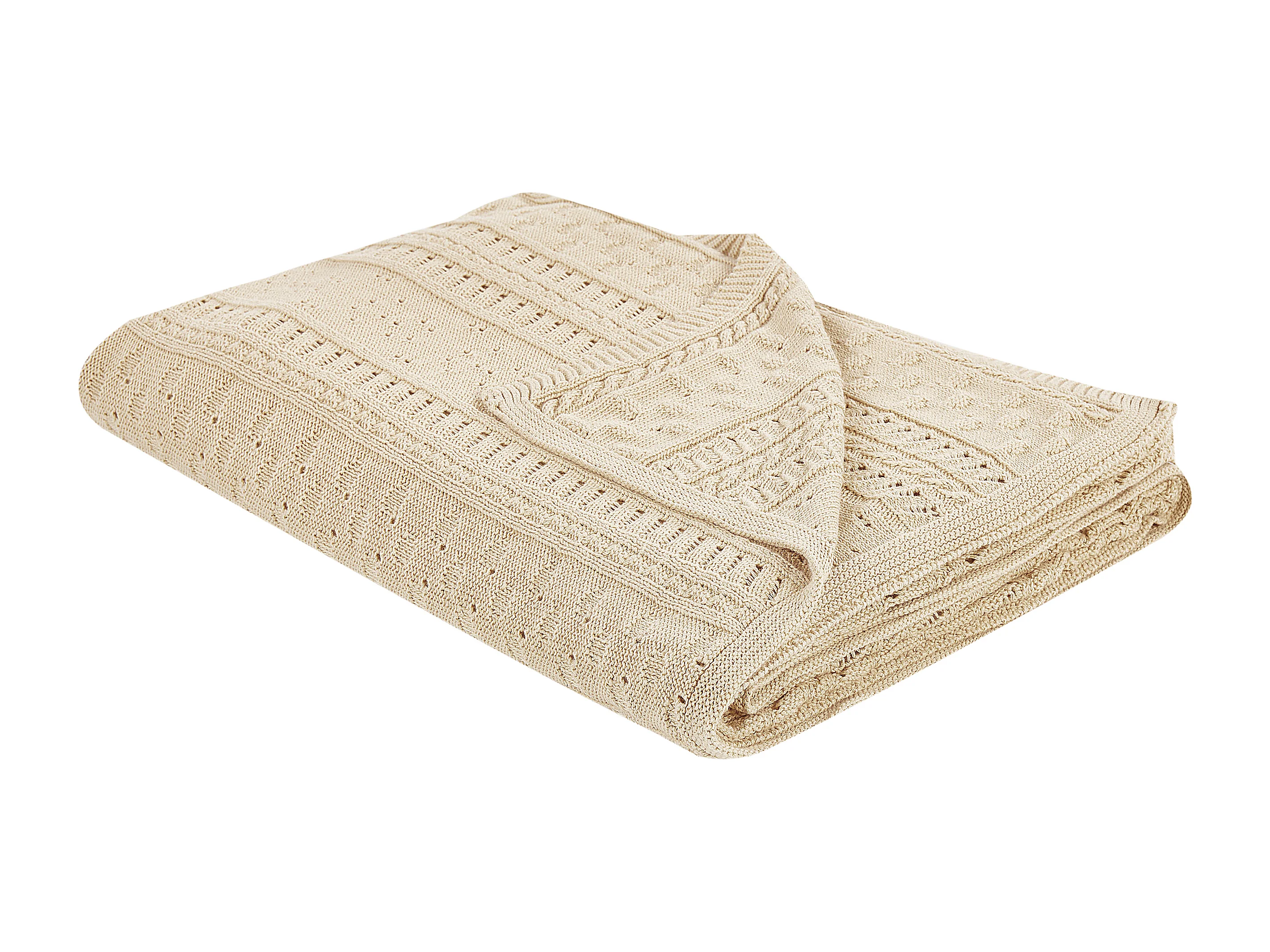 Decke Baumwolle beige 150 x 200 cm gestricktes Muster Tagesdecke Daulet