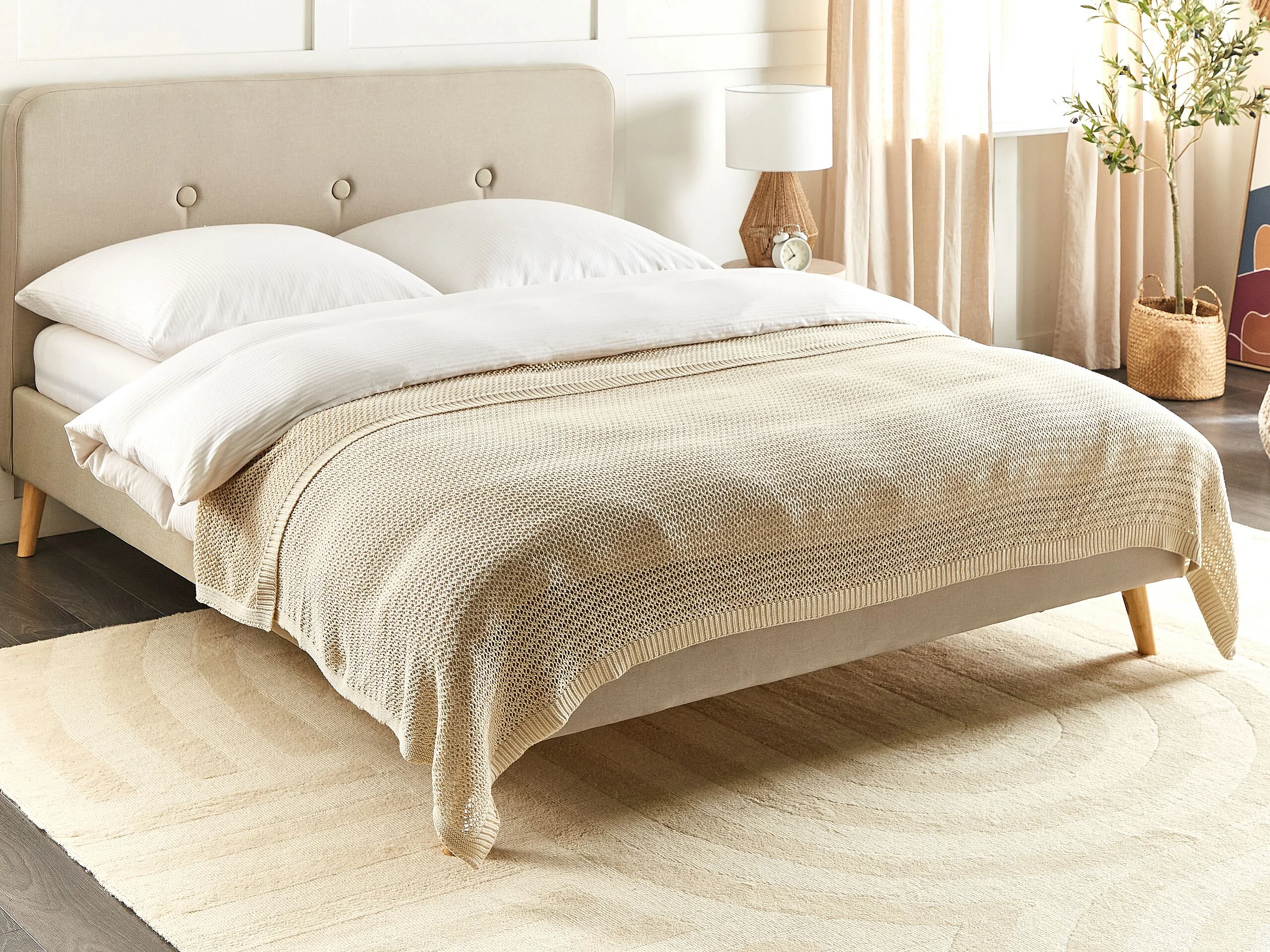 Decke Baumwolle beige 150 x 200 cm gestrickte Tagesdecke Ilen