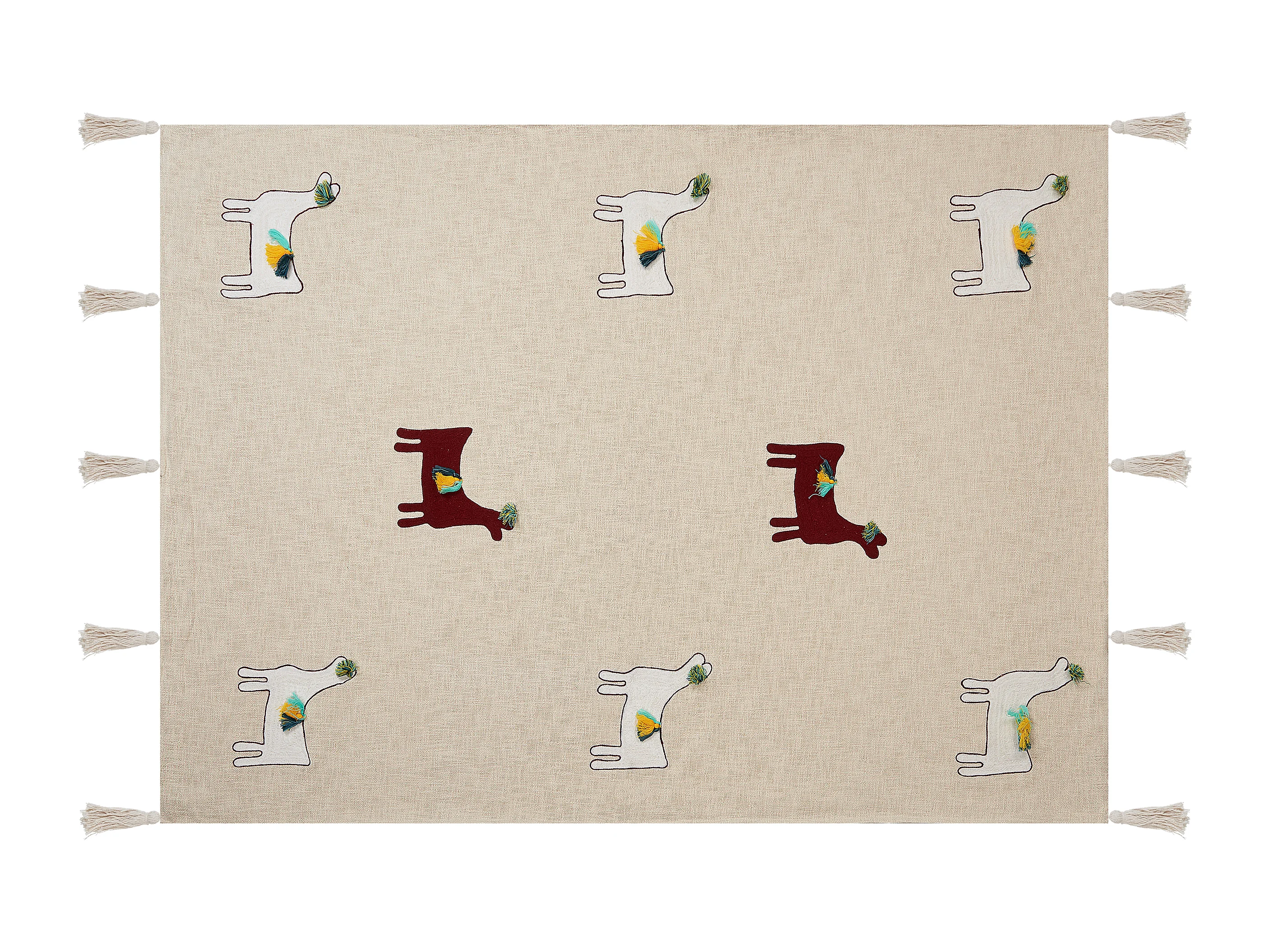 Kuscheldecke Baumwolle Tiermuster beige / braun Quasten 130 x 180 cm Deoghar