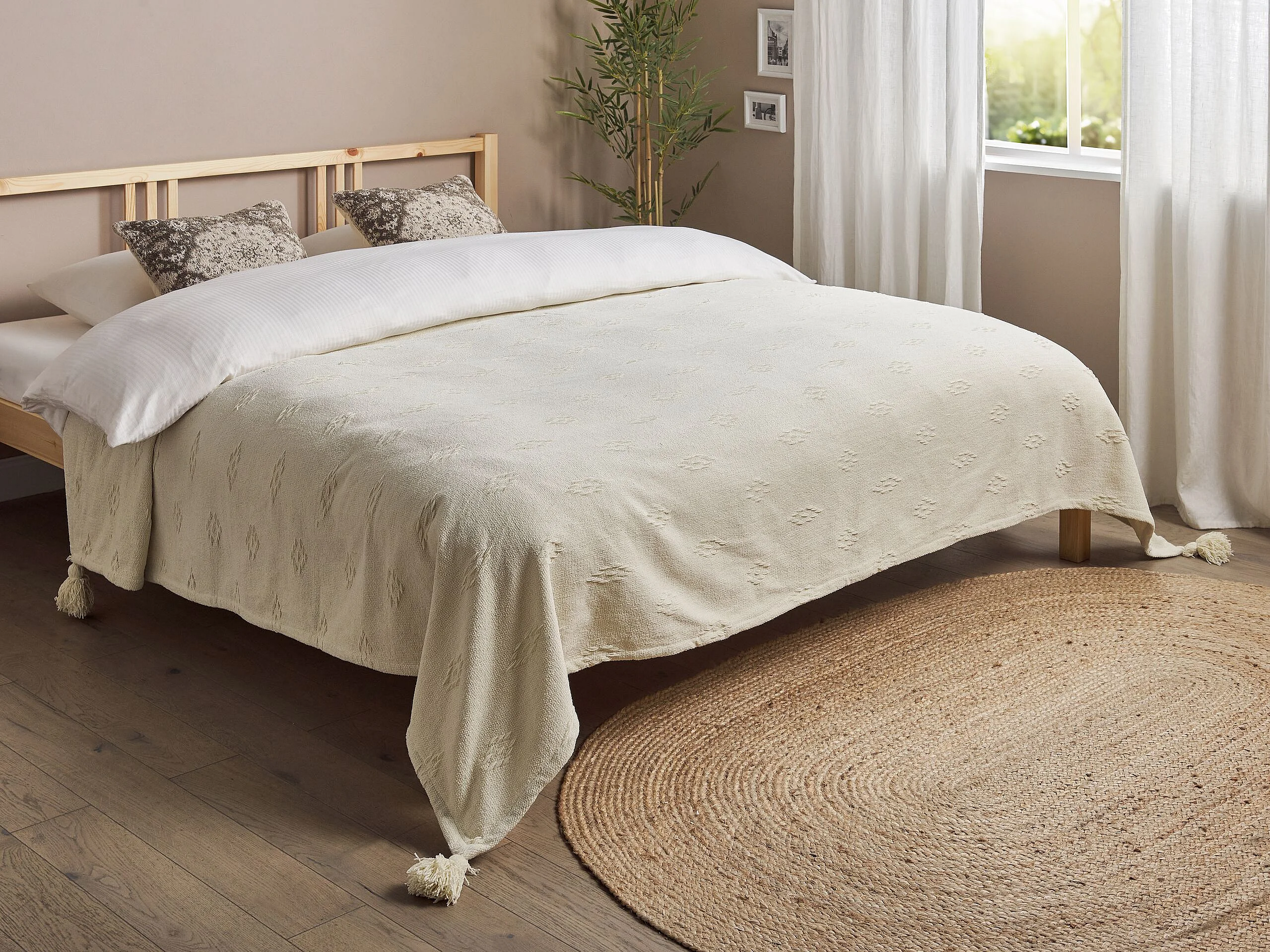 Decke Chenille beige 220 x 240 cm mit Quasten Kazy
