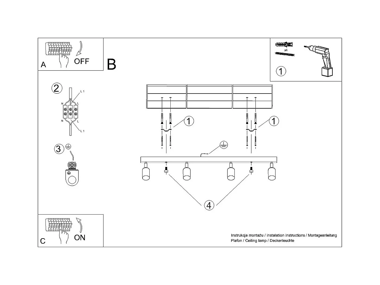 Sollux MERIDA - 4 licht Strahler Bar Schwarz, GU10