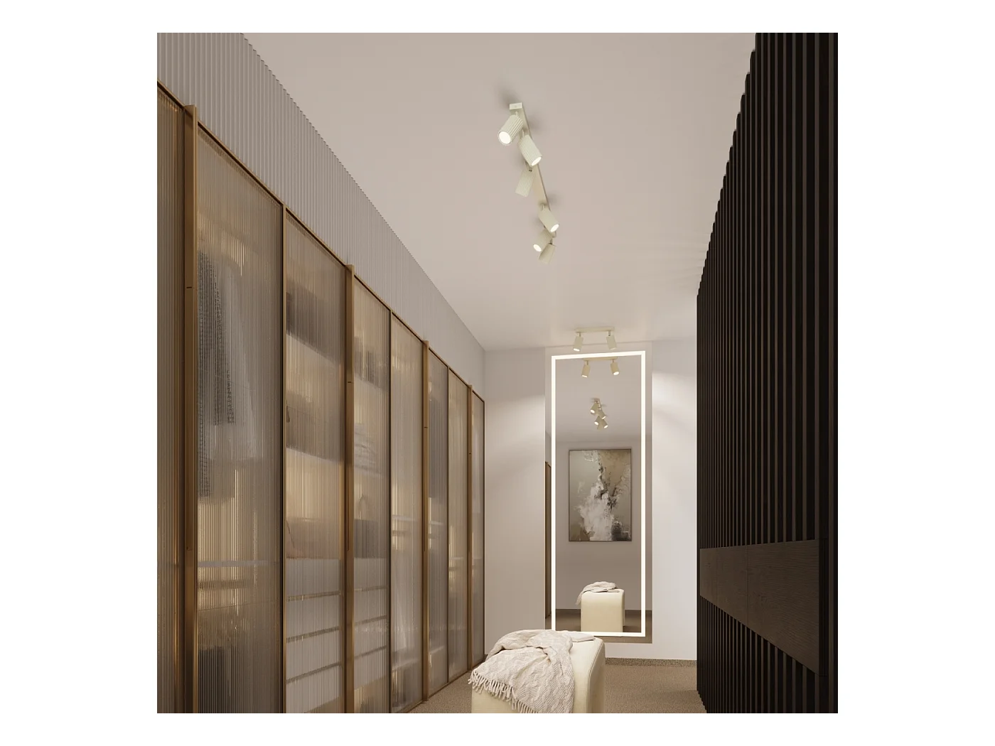Deckenleuchte Karbon Minimalistisch Aus Aluminium - 4 Lichtquellen - L.81 X H. Cm - Beige