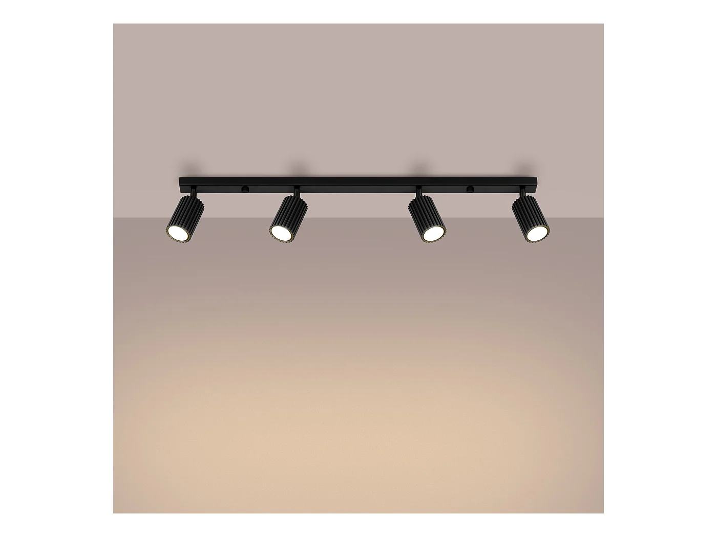 Deckenleuchte Karbon Minimalistisch Aus Aluminium - 4 Lichtquellen - L.81 X H. Cm - Schwarz