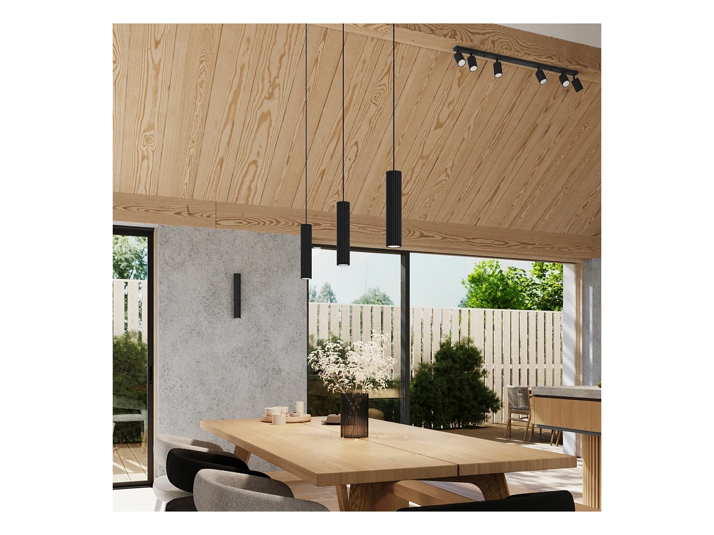 Deckenleuchte Karbon Minimalistisch Aus Aluminium - 6 Lichtquellen - L.117 X H. Cm - Schwarz