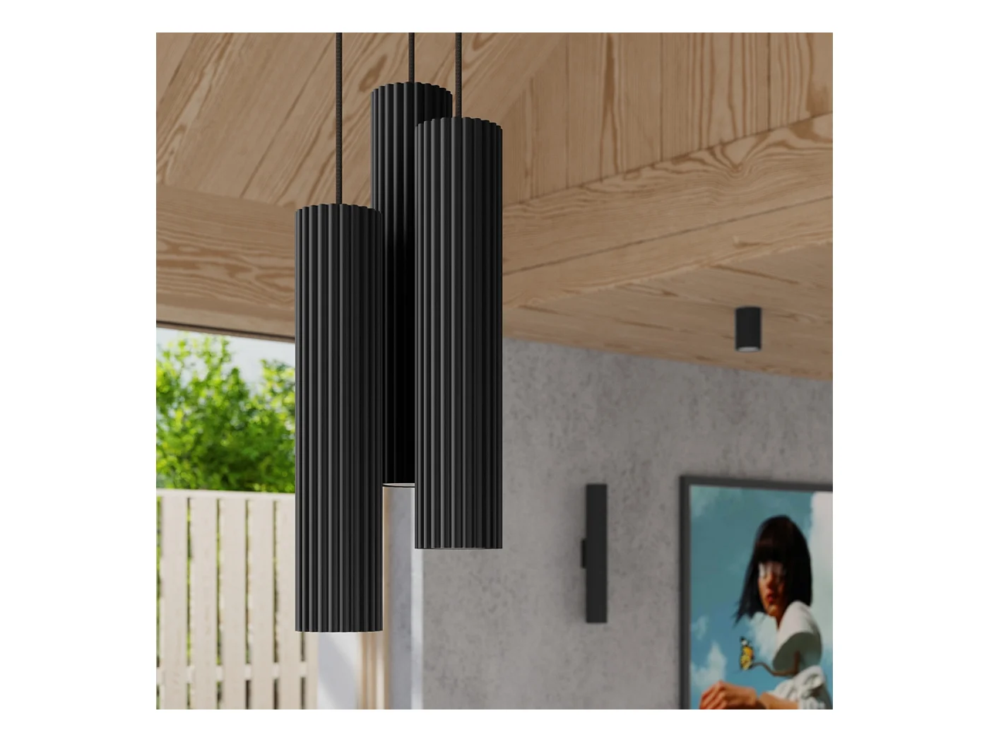 Deckenleuchte Karbon Minimalistisch Aus Aluminium - 3 Lichtquellen - L.45 X H. Cm - Schwarz